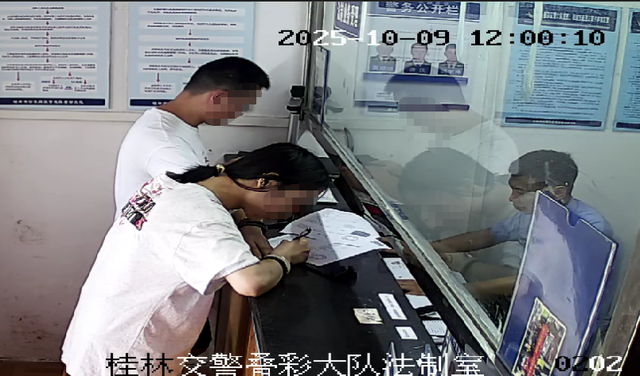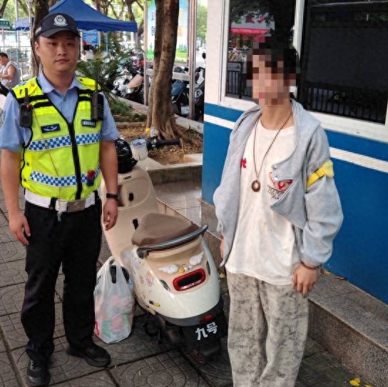 9月20日,桂林市公安局交警支队叠彩大队在中山北路北极广场路口开展日常交通秩序整治行动时。一辆电动摩托车进入执勤民警视线,当即示意驾驶人停车接受检查。