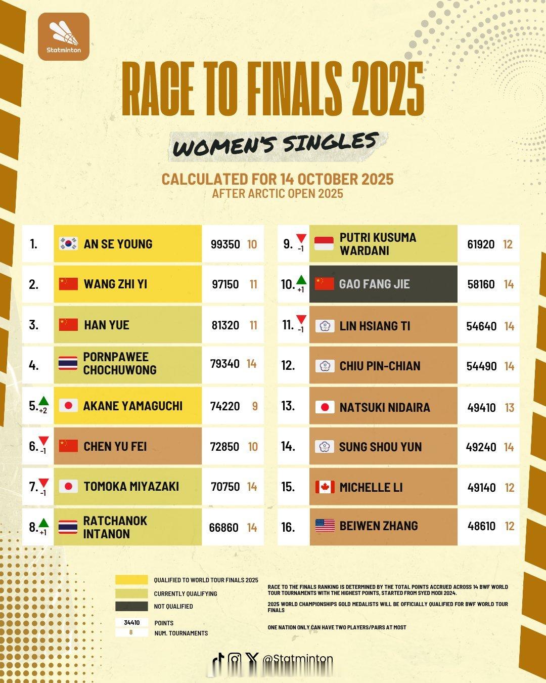 羽毛球🏸【女单】最新世界排名|总决赛积分排名