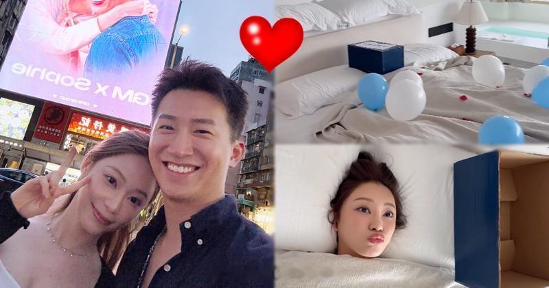 今天(12日)是曾展望(GM)的28岁生日,亦是GM和叶蒨文“配对”成功公开认爱后首个生日,叶蒨文(Sophie)今天在社交平台贴片,房门贴了一张纸写道:“GM:给你准备的生日礼物放在床上了﹗”然后GM打开疑似酒店房门,大床上有多个蓝色和白色气球,两个枕头中间放了一个盒,盒上写道:“你最喜欢的﹗”打开后原来是Sophie一早躺在床上,她还可爱地嘟起小嘴,原来Sophie早已将自己变成礼物送给男朋友,相当有心思,连罗毓仪也留言大赞:“Wowowow happy birthday 我都想要这份礼物。”