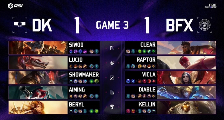 DK:Siwoo、Lucid、ShowMaker、Aiming、BeryL