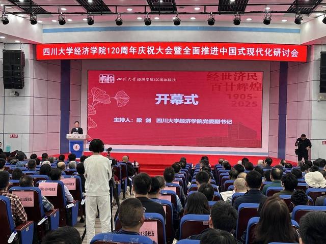 10月12日,四川大学经济学院120周年庆祝大会暨全面推进中国式现代化研讨会在四川大学望江校区举行。封面新闻记者在会上获悉,四川大学党委副书记李正赤,学校相关部门领导、兄弟学院以及来自全国的校友、师生代表300余人参加庆祝活动。