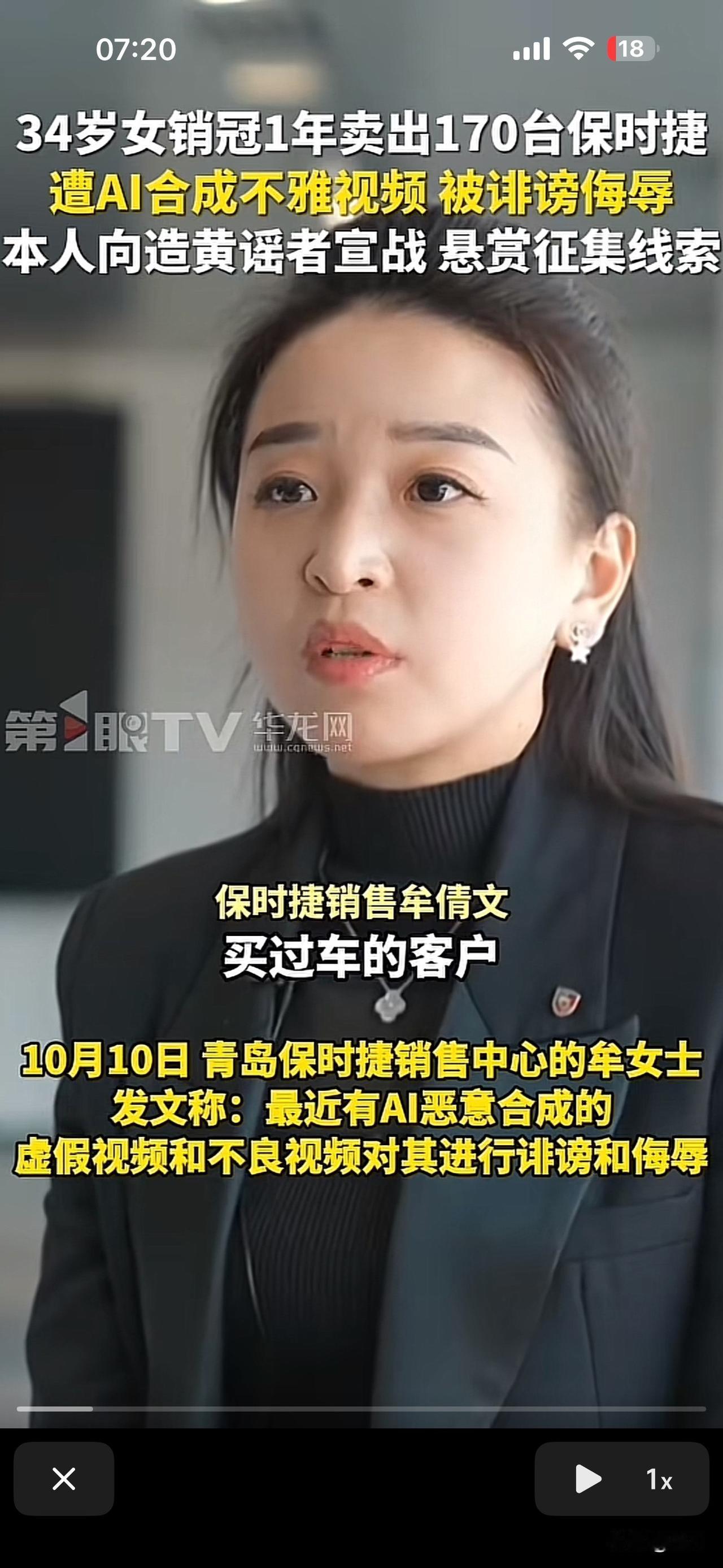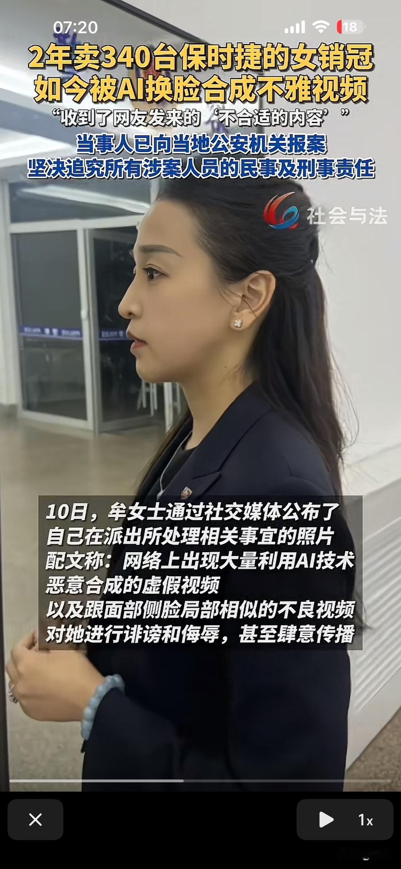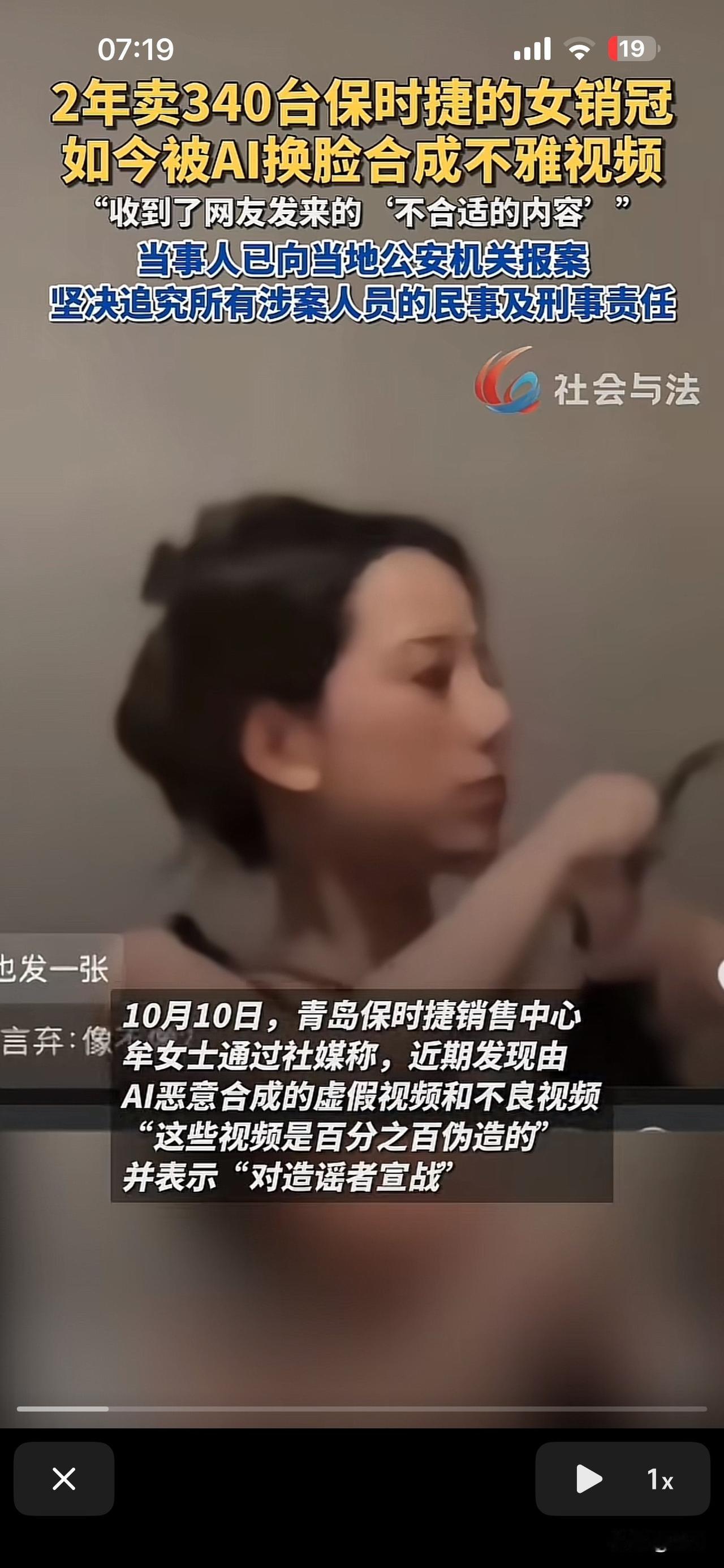 近期网上流传出一则青岛女销售ai视频换脸的不雅视频。该销售立马进行澄清和报警,随