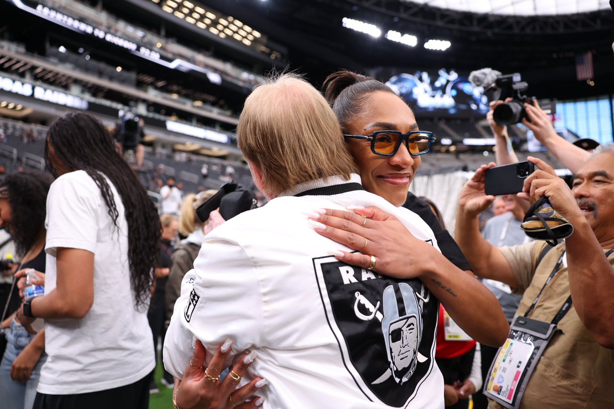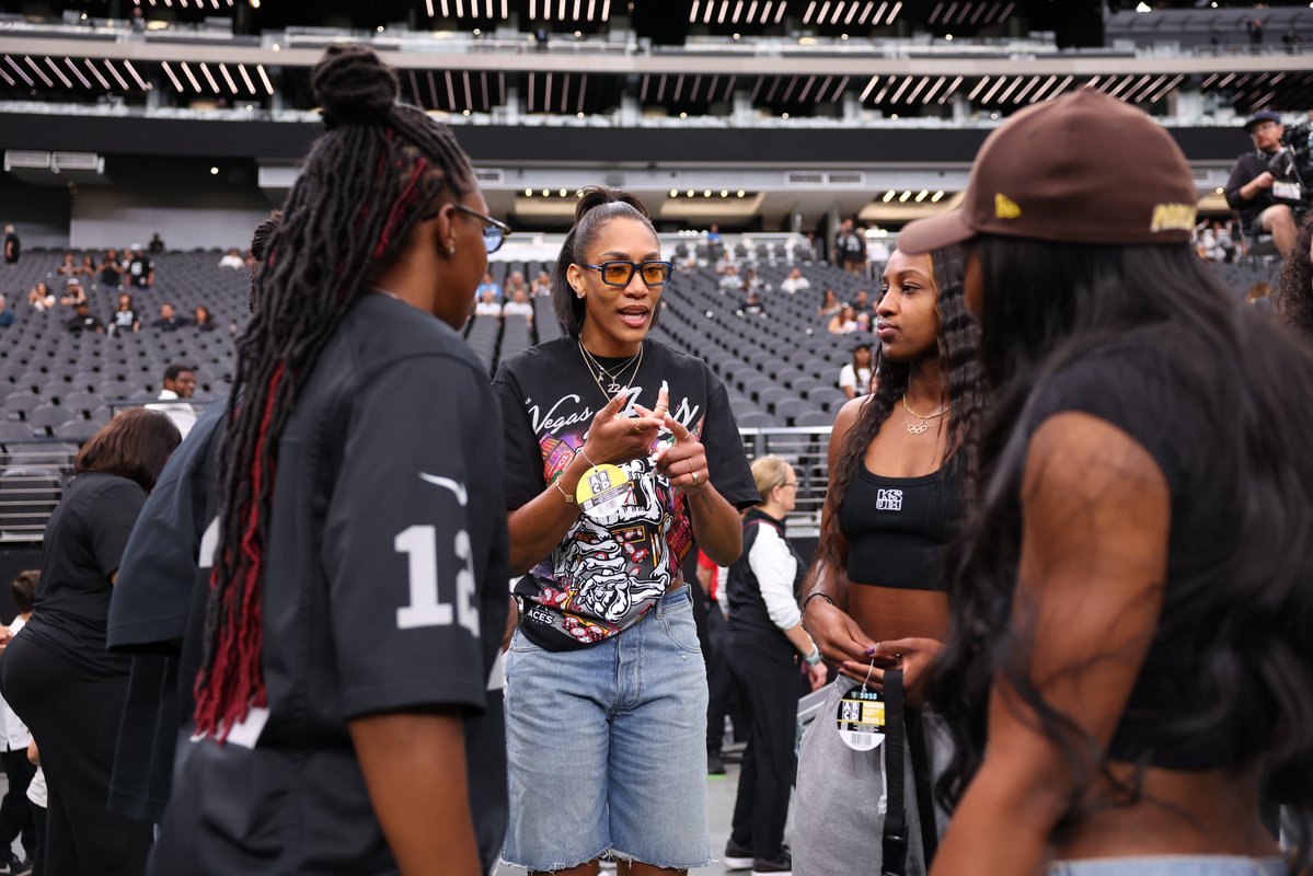 记者NFL官方X账号发推特报道,WNBAMVP兼总冠军得主阿贾·威尔逊现身拉斯维加斯现场TENvsLV比赛将在FOX/FOXOne平台直播
