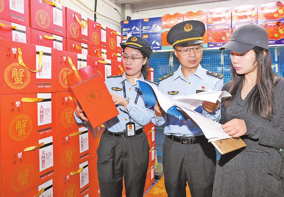 近日,北京市丰台区市场监管局组织开展大闸蟹经营单位专项检查,执法人员以农贸市场、大型商超、水产经营专卖店等大闸蟹经营单位为重点场所,检查商家是否履行进货查验义务,是否存在发布虚假广告、违反明码标价规定等违法行为,严防出现缺斤少两、以次充好、虚假宣传等情况。本报记者董芳忠摄影报道