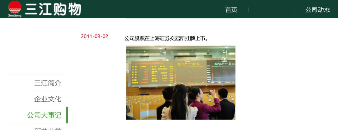 2011年,该公司在上海证券交易所挂牌上市(三江购物601116)。
