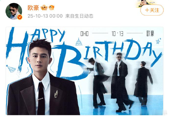 欧豪生日照来啦,是西装大衣白衬衫,满分帅气slay感得欧豪上线,生日快乐呀,期待住新一岁和你的多多见面啦!