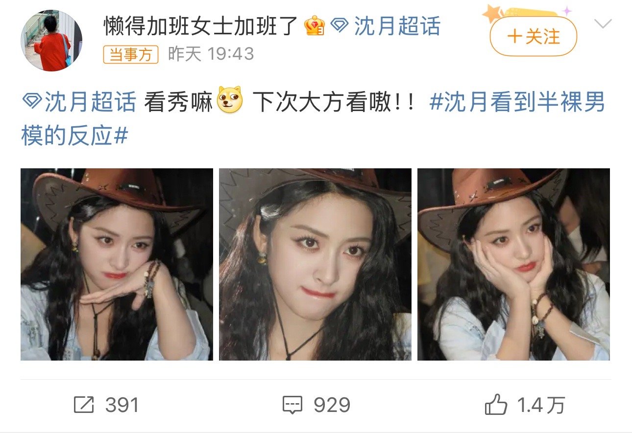 上海时装周,沈月碰到半裸男模的反应也太可爱了!模特过来的时候眼神一下子躲开,后来发现站在自己面前又不好意思的低头捂嘴憋笑,嘴角根本压不住。助理姐姐发文:看秀嘛[doge]下次大方看嗷!!
