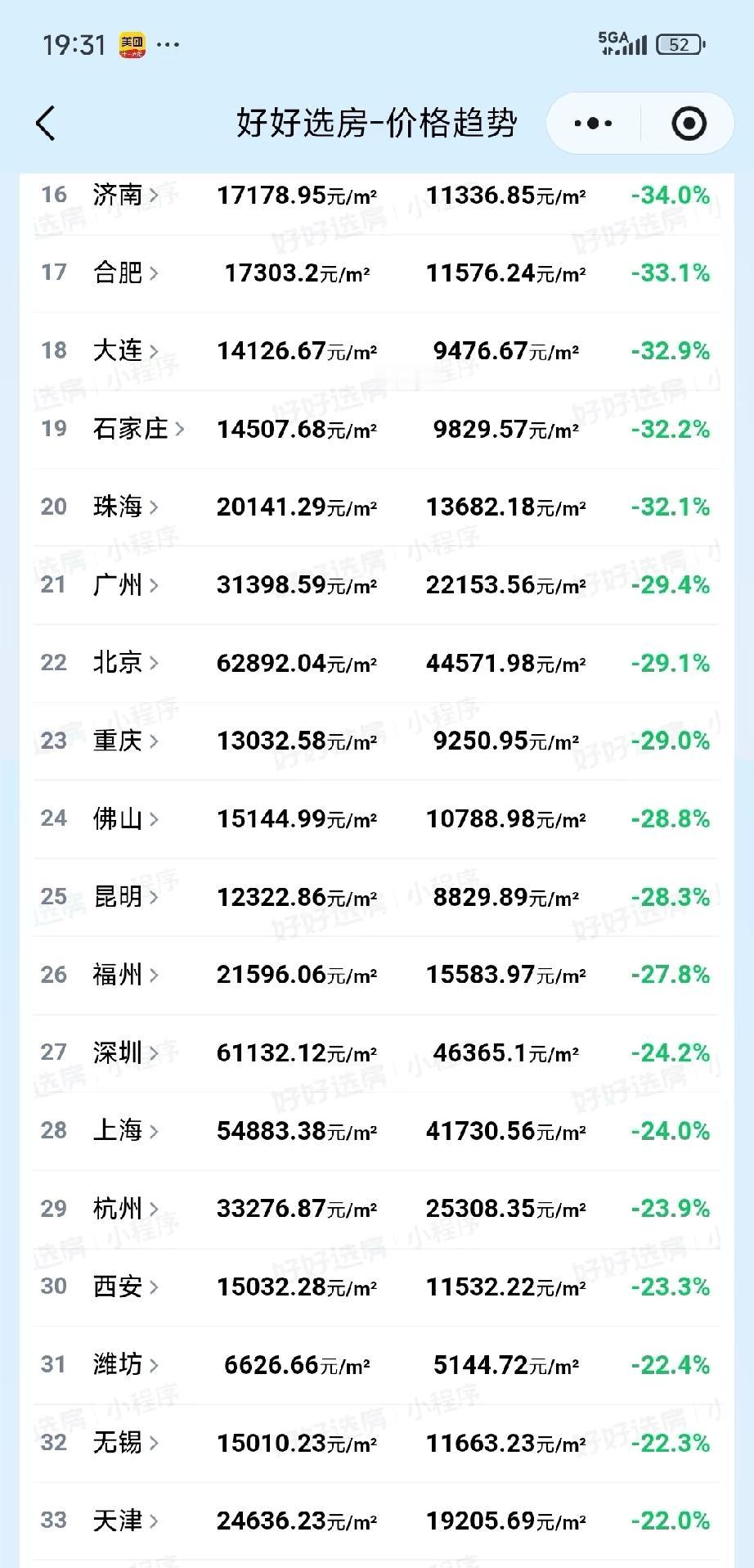 武汉遥遥领先,全国城市排名第一太棒了😄 这个第一不知道是好还是坏,我认为房价越低 收入不变的情况下,20多岁年轻人,更容易实现买房的目标,就会有更多钱去消费,幸福感满满😄