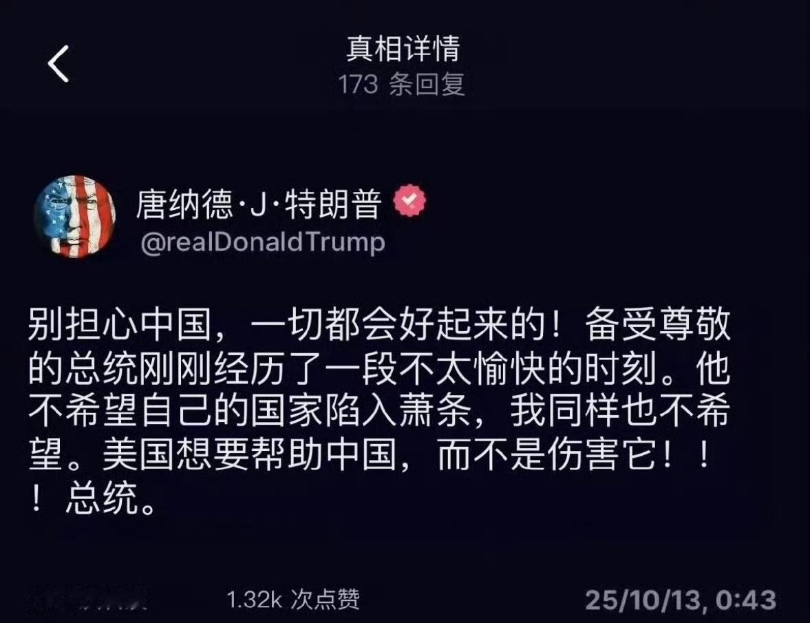 “外交喷子”美国副总统万斯呼吁北京“选择理性之路”,并声称特朗普掌握更多筹码。中国网友气笑:看来这位美国副总统相当的不理性啊! 10月12日,美国副总统万斯在受访时表示:“这将是一场微妙的博弈,很大程度上取决于中国的反应,如果他们采取极具攻击性的应对方式,我保证,美国总统掌握的筹码要远多于中国。但如果他们愿意理性沟通——我们也会如此。” 然而,戏剧性的一幕发生在10月13日,特朗普突然在Truth Social上发文称:“不要担心中国,一切都会好起来的!中方只是经历了一个糟糕的时刻。他不希望自己的国家陷入经济萧条,我也不希望如此。美国希望帮助中国,而不是伤害中国!!!” 这一硬一软,“红白脸二人转”,算是被他们偷摸学到了精髓。此番博弈的导火索,是特朗普此前威胁将从11月1日起对中国商品加征100%关税。 对此,中国商务部已明确回应,要求美方停止单边威胁,并且严肃申明:若美一意孤行,中方也必将坚决采取措施 中国网友评论区秒变段子手现场: ·我有货怕你一个印钞票的?看谁先崩 ·真有牌会发媒体,我不信[吐舌] ·给老特留点面子 一个强硬施压,一个口头安抚,这套“组合拳”简直是司马懿之心——天下皆知,11月大限将至,大家预测这场危机会以那种方式收场呢? 特朗普释放信号:愿与中国达成协议 中美贸易摩擦 如何看待万斯涉华粗鲁言论