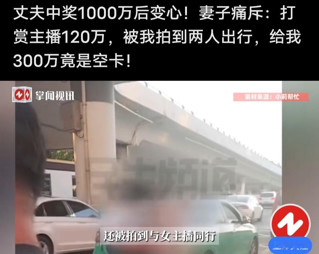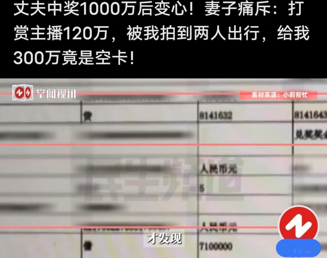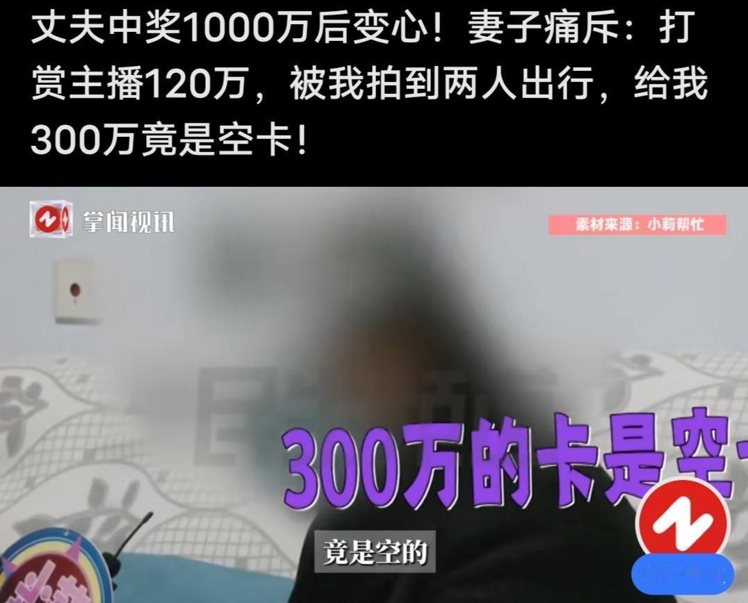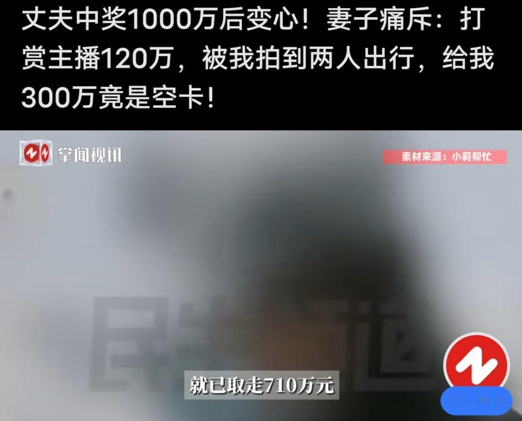 恐怕真的是原形毕露!有人说他有钱就变坏了,有人说他不是有钱才变坏的而是没钱限制了他的坏! 相关平台看到的消息,山东德州的苑女士,她的丈夫中了大奖后,他们的婚姻却走向破裂。去年12月17日,苑女士的丈夫花42元买彩票,结果惊喜中奖1017万元,缴过税后还剩814万。最开始兑奖后,她丈夫说过要带她去旅游,还给了她一张写有300万元的银行卡,美其名曰说是他们两个人的养老基金。可是她没有想到的是,回家后,她丈夫的性情大变,天天沉迷打麻将、看直播,还打赏女主播,打赏的金额都高达120万元,他还被拍到与女主播同行。 苑女士打算离婚时,却发现那个所谓养老基金的300万卡里居然什么也没有,是一张空卡,他早在中奖第三天就转走了710万元,面对质疑时,他丈夫还心安理得地说,反正他起诉了,钱他也花完了,就等判决好了。 这样的人,或许真的是,他本来就不是个好人,之前没有暴露本性,不过是贫穷限制了他的恶,得到意外之喜后就原形毕露了,还攻于算计,给自己妻子一张空头卡,最开始中奖时就开始计划怎么花,唯独没有给妻子计划,意外之才来得太容易,自然流走得也很快,打赏女主播,还跟人同行,不是看在你这两个钱上,人家愿意跟你同行吗? 在这样人心里,原配就是来共苦的,一旦有钱了,就跟别的人同甘去了,就忘了妻子的一切付出和好了,真是可悲! 但愿好人,干净的人遇到的都是对的人,都是良人!