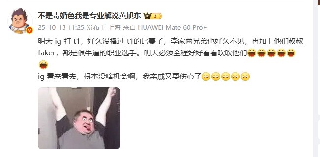 功利奶!黄旭东宣布直播T1vsIG:ig看来看去,根本没啥机会啊