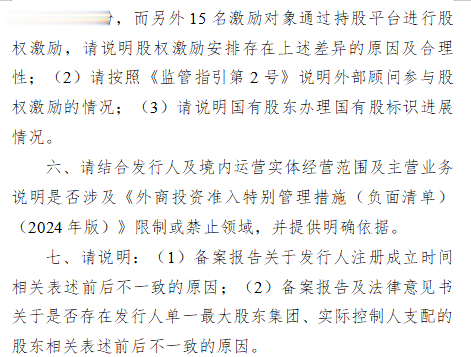 七、请说明:(1)备案报告关于发行人注册成立时间相关表述前后不一致的原因;(2)备案报告及法律意见书关于是否存在发行人单一最大股东集团、实际控制人支配的股东相关表述前后不一致的原因。