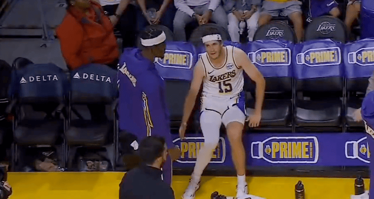 本场比赛第三节,湖人后卫奥斯汀-里夫斯遭遇腿部伤势离场。