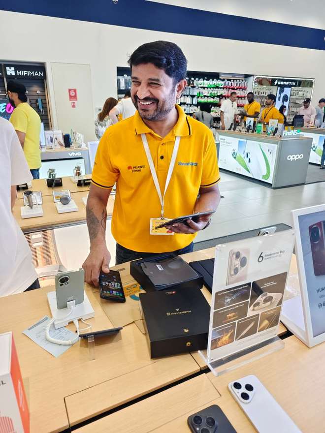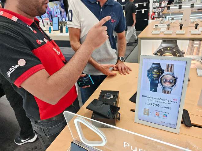 在DubaiMall零售店里细微观察会发现,很多人会被华为三折叠的形态和Pura80的影像能力吸引驻足,但更容易成单的是对谷歌生态依赖较轻的穿戴和平板产品。