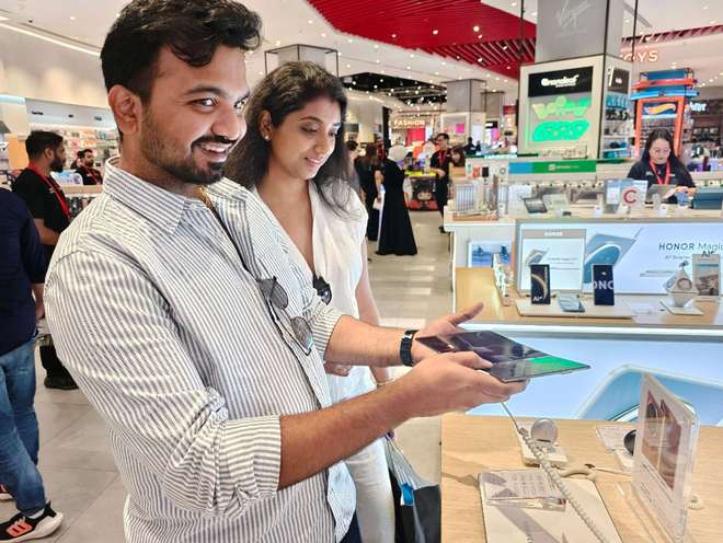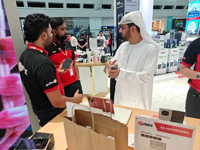 在零售商SharafDG,观察者网恰好遇到了要去非洲工作的两名中国用户。他们在现场购买了一台华为MateX6,并表示迪拜售价要比国内便宜,更重要的是国内的华为手机使用的是鸿蒙系统,无法安装谷歌应用,而海外版使用的还是EMUI,可以“曲线”安装谷歌软件。