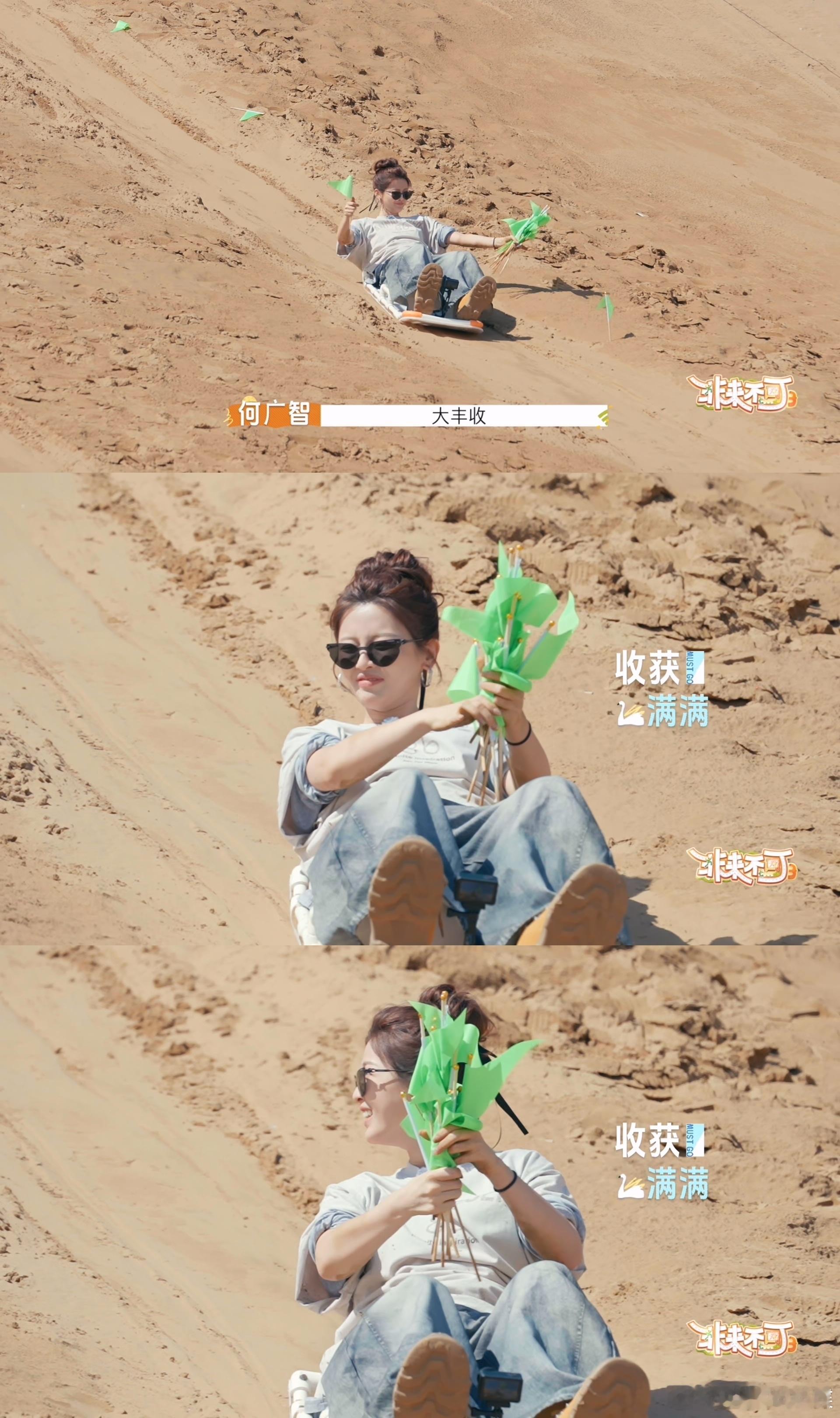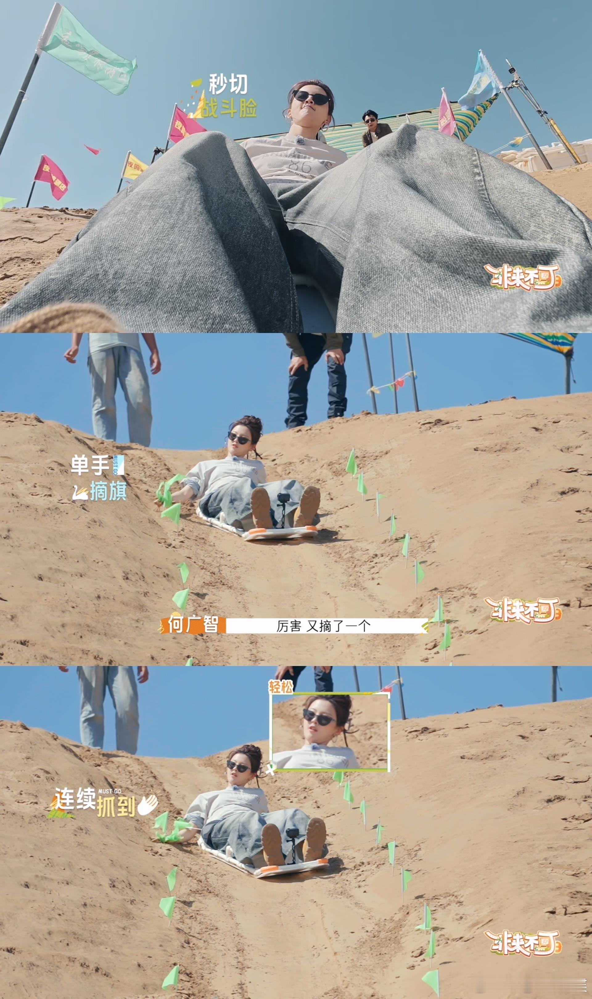 杨超越滑沙也在干农活 超越妹妹简直是滑沙界的“农业专家”!她用一套独特的犁地式滑沙法,不仅迅速控速,还把拔旗变成了大丰收,玩得又实用又有趣,真是聪明又灵活!