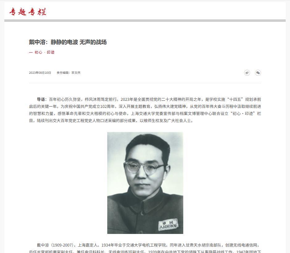 1949年,被判10年的地下党员戴中溶在牢里醒来,睁眼一看,整个监狱空荡荡的,一个看守都没见着,他就这么稀里糊涂的自由了,自己都觉得不敢信。 ( 麻烦各位读者点一下右上角的“关注”,留下您的精彩评论与大家一同探讨,感谢您的强烈支持!) 戴中溶生于上海嘉定一个普通家庭,凭借勤奋好学考入交通大学电机工程学院。 在校期间,他深受张廷金教授影响,立志以通讯技术报效国家。 他与同窗顾德欢结下深厚友谊,这位后来成为中共地下党员的同学,时常与他探讨革命理想,还在他心中播下了共产主义思想的种子。 1934年毕业后,戴中溶被推荐至胡宗南部队负责无线电通讯建设。 胡宗南对他十分赏识,不仅让他组建全军通讯网络,还破例允许他自由进出译电室查阅机密电报。 虽然待遇优厚,但戴中溶对军中腐败现象日益反感。 1937年淞沪会战后,他本已离职回乡,却在胡宗南的恳请下重返西北,这个决定改变了他的人生轨迹。 1938年底,戴中溶的妹妹黄葳来到甘肃探望他。 此时黄葳已经加入中国共产党,怀着满腔革命热情。 在数个深夜的长谈中,她向兄长讲述了延安的见闻和共产主义理想,并最终说服他为革命事业效力。 戴中溶经过慎重考虑后,向八路军驻西安办事处表达了前往延安的意愿。 但组织经过研究,认为他现任的职务过于重要,要求他继续留在胡宗南部从事地下情报工作。 从此,戴中溶开始了双重身份的生活。 表面上,他是胡宗南机要室副主任,负责无线电通讯工作;暗地里,他成为中共地下情报人员。 由于职务便利,他能够直接接触到胡宗南部的作战计划、部队调动等核心机密,而无需采取任何窃取手段。 他通过西安一家书店的老板与组织保持单线联系,后来又有一名叫王金平的副官专门负责传递情报。 戴中溶严格遵守地下工作纪律,从不留下任何书面记录,所有需要记忆的信息都牢牢刻在脑海中。 1947年2月,胡宗南准备大举进攻延安。 戴中溶获取这一重要情报后及时送出,为中央决策提供了关键依据。 他后来回忆,这是自己做过的最重要的情报工作之一,还曾获得中央的嘉奖。 同年9月,北平中共地下电台被军统侦破,报务员李政宣被捕后叛变,导致整个北方情报系统遭受严重破坏。 王石坚情报系统被摧毁,44名地下工作人员被捕,123人受到牵连。 戴中溶虽然与王石坚系统没有直接联系,但仍受到怀疑。胡宗南亲自派飞机将他从甘肃接回西安,随后转送南京受审。 在审讯中,军统方面指出他与在延安的妹妹有联系,但戴中溶坦然承认这一点,同时强调自己不过问政治。 由于胡宗南的维护和缺乏直接证据,最终他被判处十年有期徒刑,成为全案中刑期最轻的犯人。 在南京和杭州监狱关押期间,戴中溶目睹了许多同志被枪决。 他后来回忆,每天清晨都能听到行刑的枪声,政治犯被一批批带走处决,甚至连被判无期徒刑的犯人也不能幸免。 到最后,监狱里只剩下十名与电台案有关的军人犯,由九名看守看管。 1949年5月初,随着解放军的逼近,监狱看守逐渐松懈。 5月1日早晨,看守送来早饭后竟然没有锁门,之后更是不知所踪。 戴中溶和狱友们大胆推开监狱大门,发现杭州已经解放,解放军部队正在城内巡逻。他们获得自由后,暂时留在监狱等待接管人员。 几天后,地下党组织终于找到他们,解释说因为接管工作繁忙而未能及时前来。 戴中溶出狱后不久,在《解放日报》上看到老友顾德欢担任杭州市军管会成员的消息。 他立即写信联系,第二天顾德欢就派警卫员来接他。 两位老同学重逢时激动不已,相拥而泣。 随后戴中溶返回嘉定老家,但平静生活没过多久,就收到当年地下工作负责人罗青长的来信,邀请他到北京参加新中国的建设工作。 在北京,戴中溶被委以重任,负责为开国大典设计电控升旗装置。 当时北京找不到合适的旗杆,他带领团队跑遍全城,最后在一家自来水厂找到四根不同直径的水管,通过焊接方式制成一根高达22.5米的旗杆。 1949年10月1日,当毛泽东按下电钮,五星红旗伴随国歌冉冉升起时,戴中溶站在广场一角,热泪盈眶。 此后,戴中溶又参加了抗美援朝战争中的通讯设备改造工作,将缴获的日本和美国电台修复改装,供志愿军使用。 1955年,他被授予中校军衔。 1958年调任国务院科学规划委员会新技术室副主任,参与制定新中国第一个科学技术十二年规划。 1972年,已经63岁的戴中溶主持长波授时系统建设,这是一个技术难度极高的工程,旨在将中国的授时精度从毫秒级提升到微秒级。 经过十多年努力,1983年长波授时台建成,次年国庆游行时,该项目作为重大科技成果展示给全国人民。 1988年,长波授时系统获国家科技进步一等奖,戴中溶的名字位列获奖者第二,但他始终保持低调,从不居功。 2007年5月11日,戴中溶在北京逝世,享年98岁。
