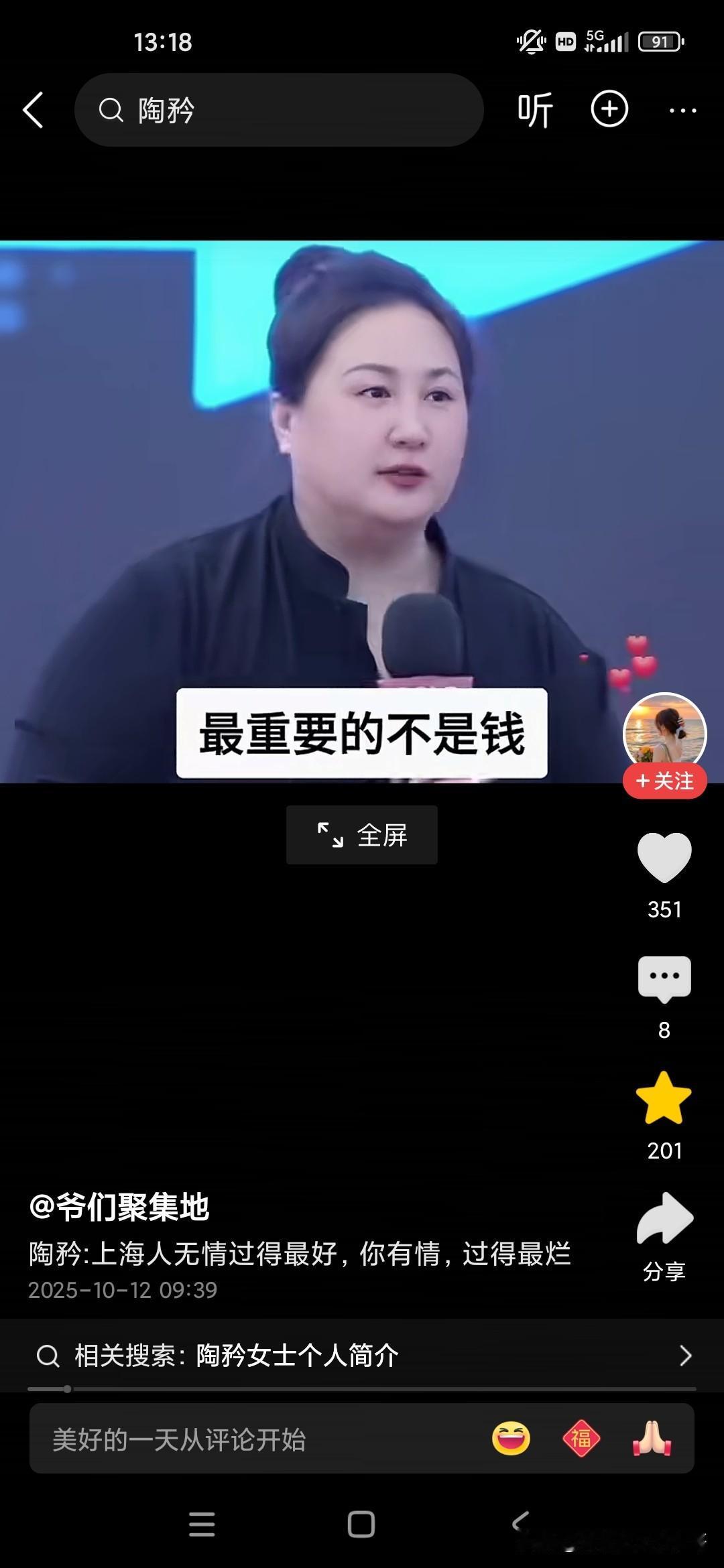刚才听陶矜老师讲上海人最无情,但是上海人过得最好,我们是最讲情义,最讲情面,情面最讲关系的,但是我们往往过的不好。她还提到一个例子,之前有两个小伙伴儿,因为关系不也比较好,就一起合伙儿办公司入了各50%的股份,结果后来公司发展越来越强大,然后的话,他每年可能赚个上千万,结果的话他就把这个结果是A能力比较强,全力以赴发展,对公司投入了大量的时间和精力,但是B的话什么也不会做,只是按期分成而已,每年赚1000万就要有500万分给他,后来这个a同学的话就参加了陶老师的课程,就问这个谭老师如何解决这个问题,老师说你应该和他谈一谈,不要讲什么情谊,讲了情谊的话,要分出来一半儿给他,而他什么都不做,你内心会好受吗?谁知道一说对方就和他谩骂,呃这个同学的话就把这个公司给注销,然后重新注册,自己单干,结果他们两个也闹翻了,陶老师说这就对了,有的时候我们必须要打破传统的固有思维,不要因为关系,情谊害了自己的前景!