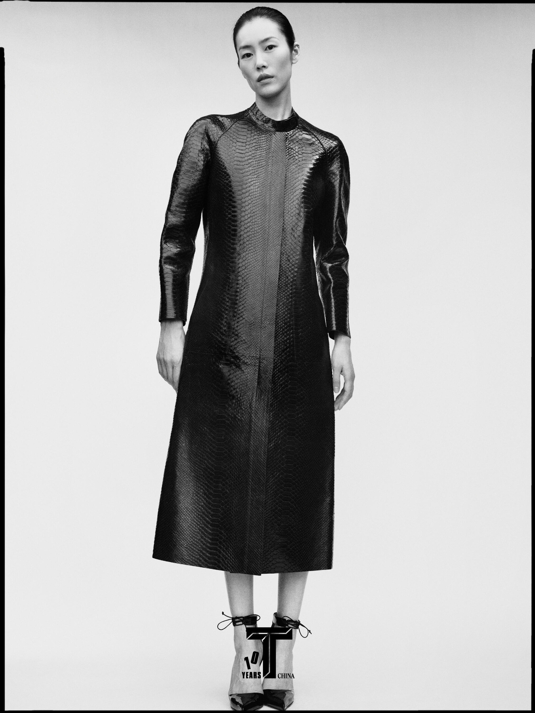 刘雯T锦绣十月刊封面刘雯以香奈儿 2025 秋冬高级成衣系列黑色小羊皮套装之姿,
