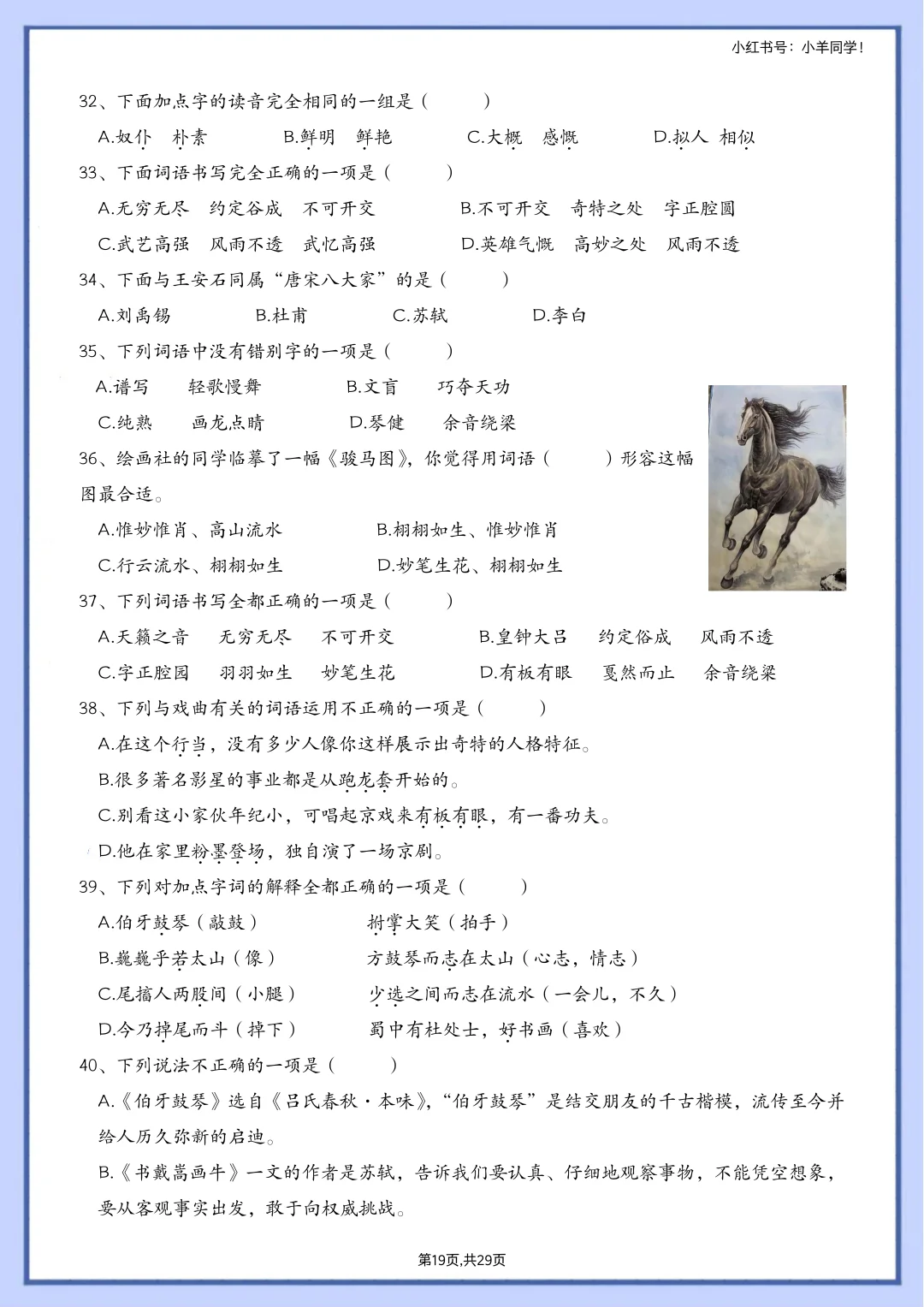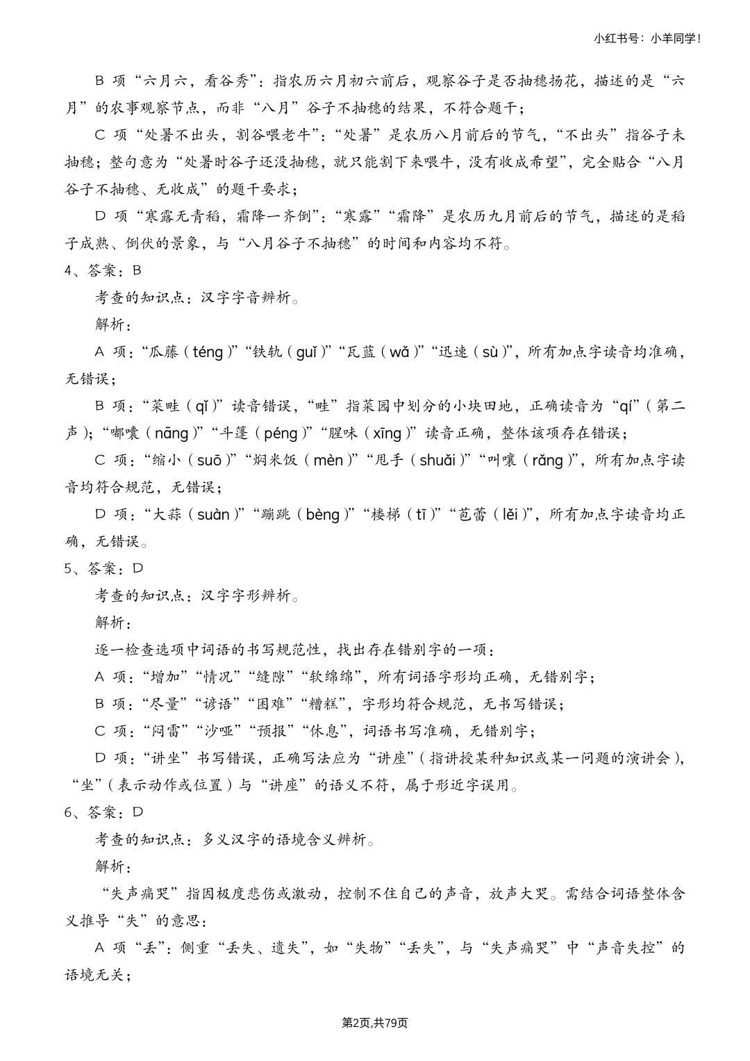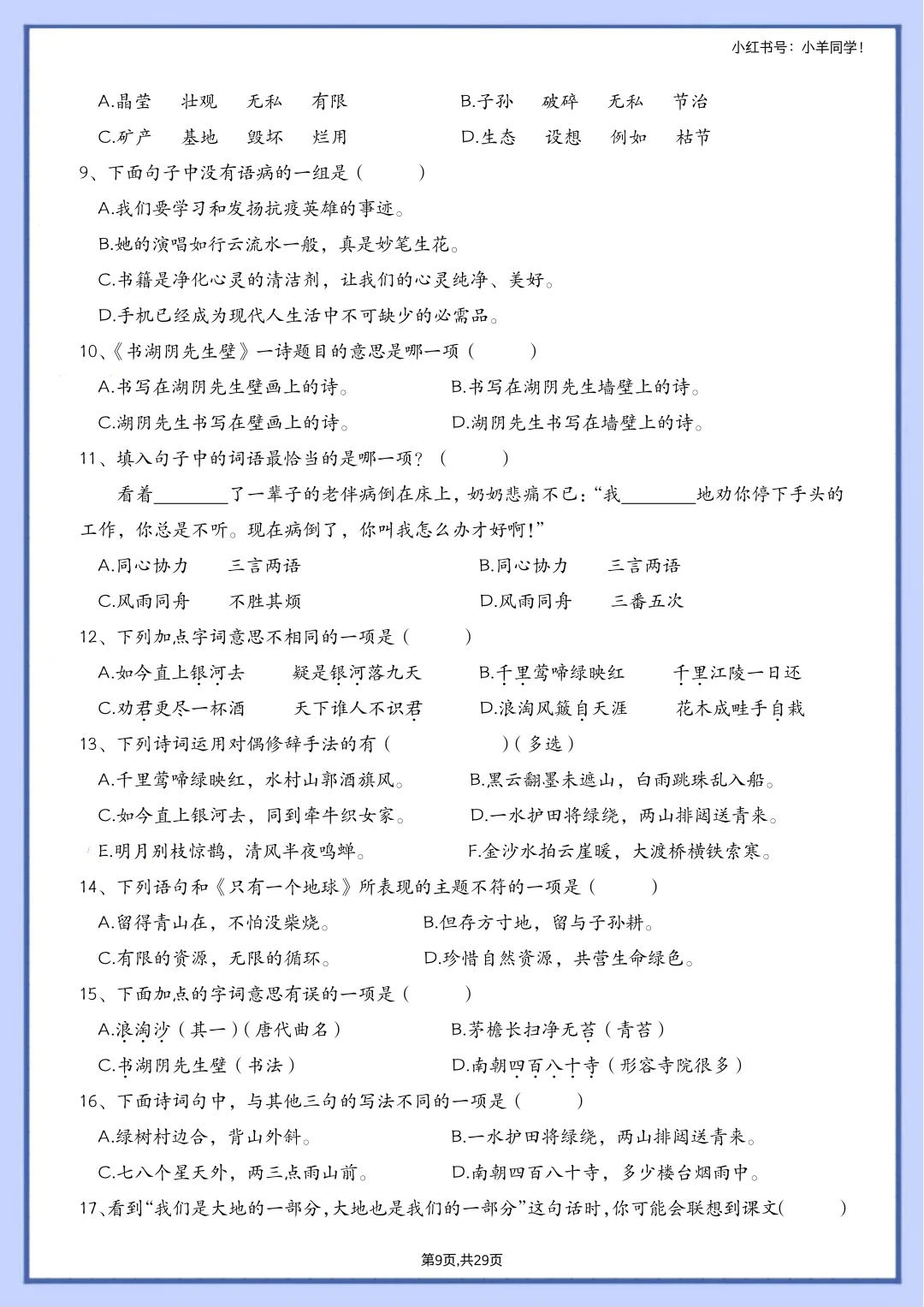 ✅ 别看是选择题,考查范围真的巨广!字音字形、标点符号、拼音练习、诗句理解、修辞手法、口语交际、修改病句、词句段运用、词语辨析、课文理解、句式转换、词语搭配、名句运用、关联词…… 基础知识点几乎全涵盖,一套练透超省心!
