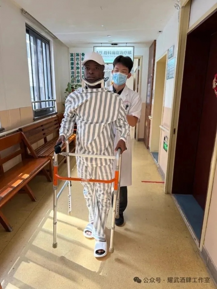 直播吧10月13日讯据广西足球博主“耀武酒肆工作室”晒照,阿萨莫阿在助行器辅助下,可以下床行走。