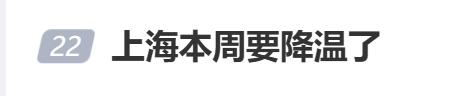 天气趋势:本周上海主要处在副热带高压边缘,天空云系增多,不时有阵雨出现,气温回落至30℃以内。