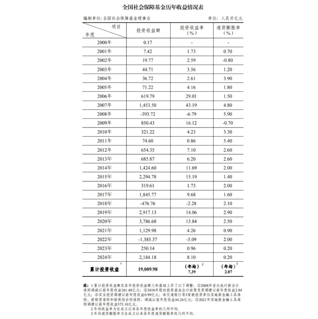 “十一”长假前的最后一个工作日,全国社保基金会公布了过去一年的投资成绩单:2024年实现投资收益率8.1%,基金投资收益额2184.18亿元。此外,自成立以来,社保基金年均投资收益率7.39%。