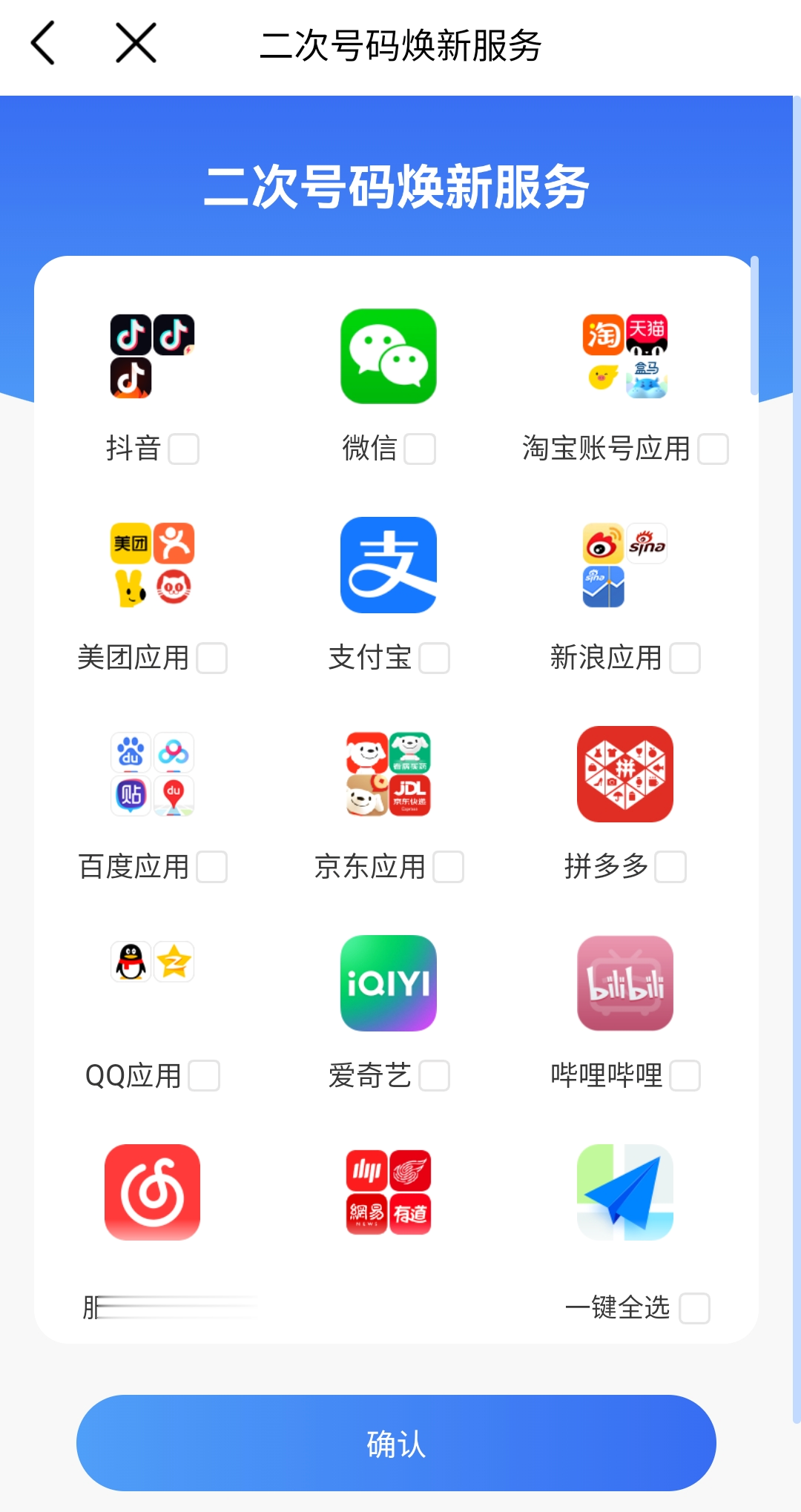 用户可通过微信关注“码号服务平台”或“一号通查”公众号,在菜单栏中找到并使用“一键解绑”功能。信息时报记者实测发现,用户可勾选需要解绑的主流互联网应用,覆盖范围广泛,既包括微信、QQ、抖音、淘宝、美团、支付宝、京东、WPS等常用App,也涵盖QQ音乐、钉钉、豆包、顺丰速运等实用工具,甚至包括瓜子二手车、豆瓣、奇富借条等相对小众的应用。