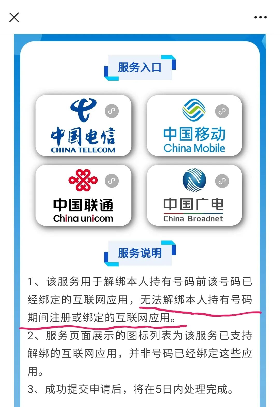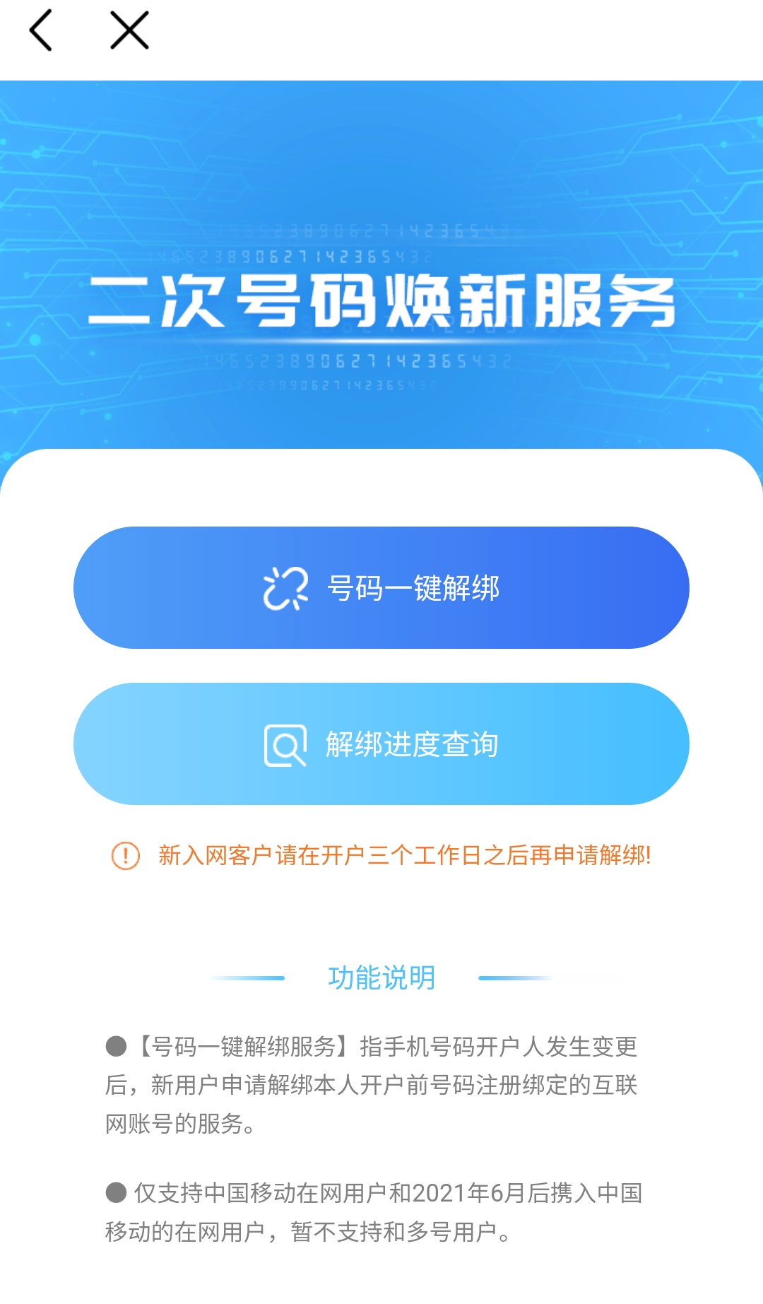 如果要解除手机号码“上一任”用户所绑定的互联网应用,而非当前正在使用的号码,在工信部指导下,目前国内运营商已推出“一键解绑”服务。