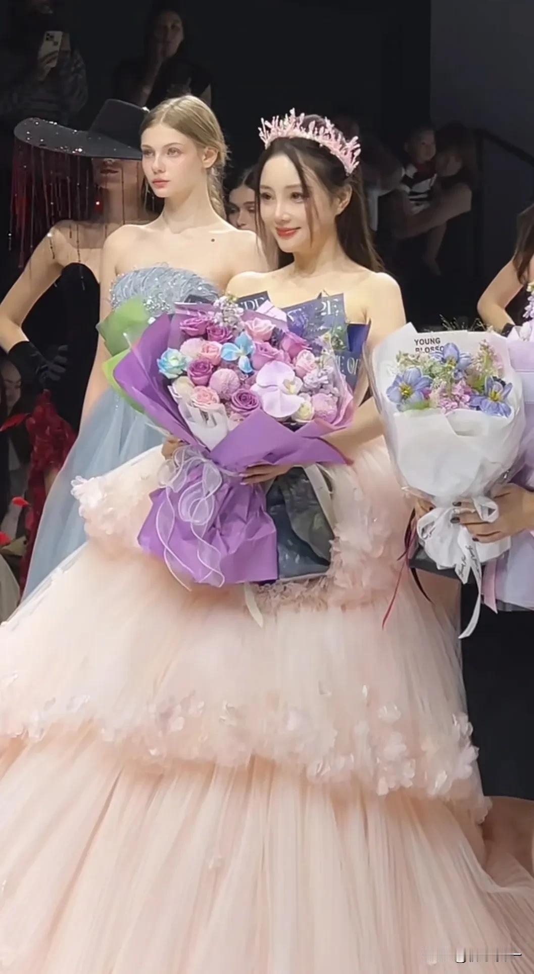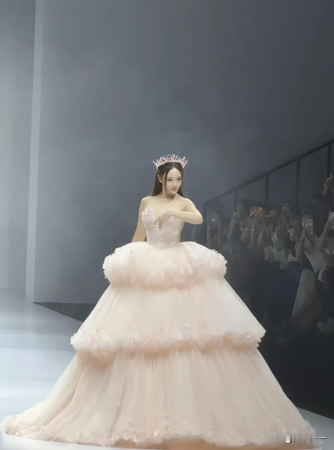 李小璐真的闪耀上海秀场啊 44岁的她粉色蓬蓬裙一穿,完全是在逃公主降临啊,在台上