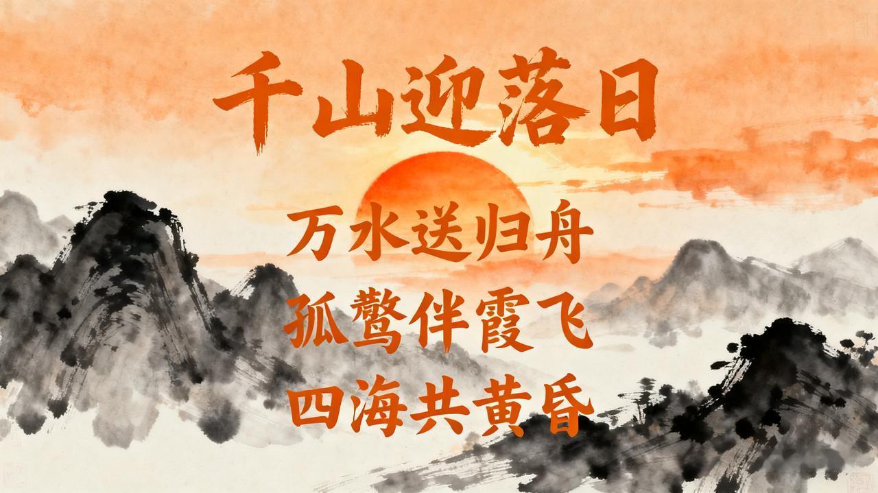千山迎落日,谁能接住这下半句?1. 千山迎落日,万水送归舟 2. 千山迎落日,孤鹜伴霞飞 3. 千山迎落日,四海共黄昏