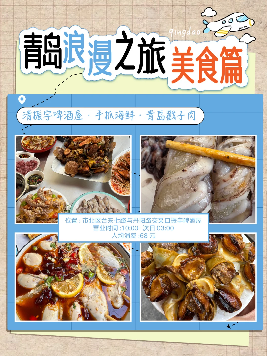 📍振宇啤酒屋:青岛手抓海鲜、青岛戳子肉/活海鲜超棒,10:00 - 次日03:00营业。