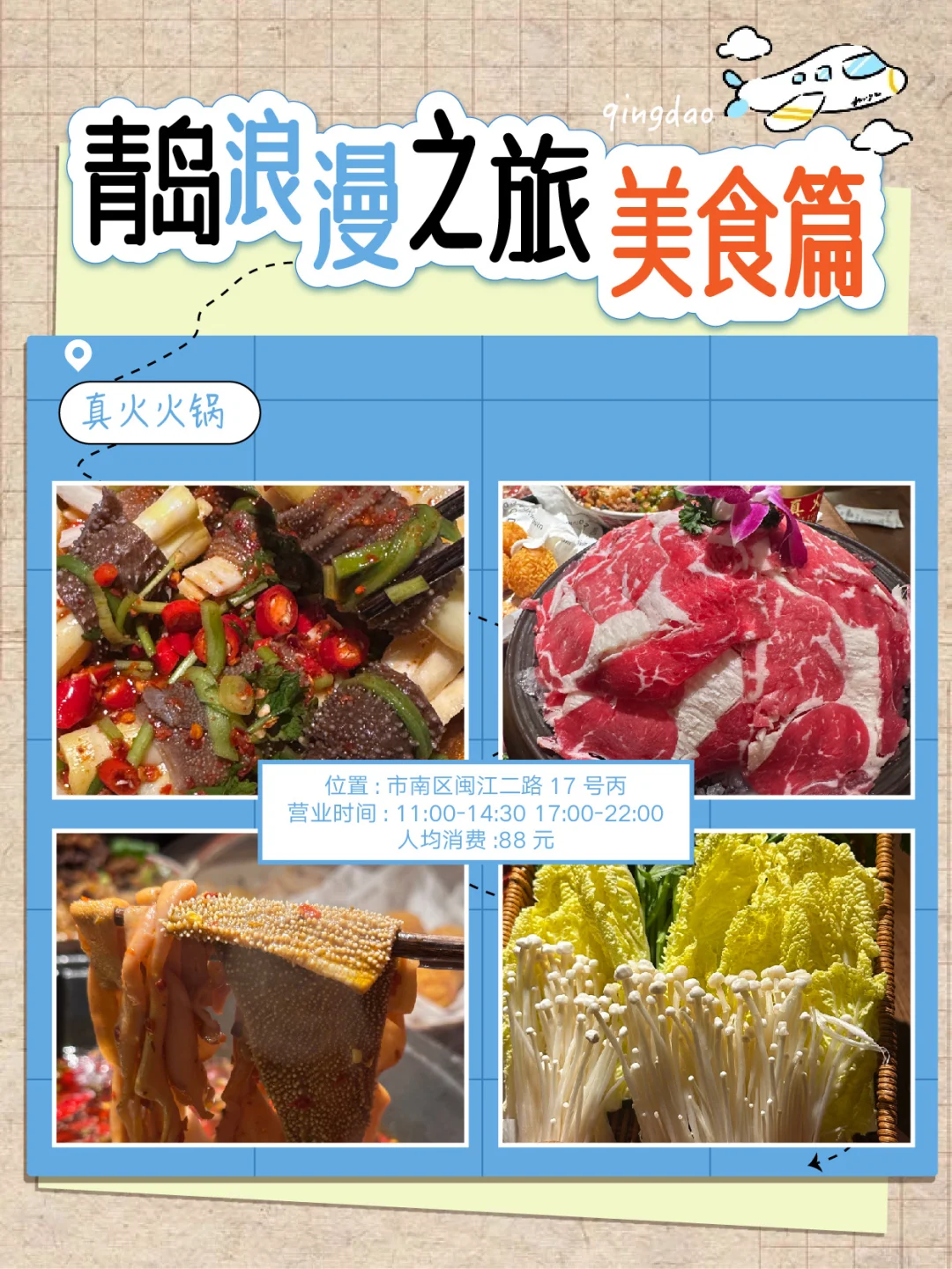 📍真火火锅:青岛老店火锅,11:00 - 14:30,17:00 - 22:00营业。