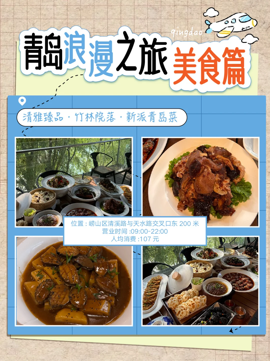 📍清雅臻品·竹林院落:新派青岛菜,竹林餐厅,09:00 - 22:00营业。