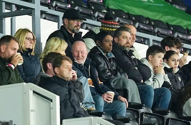 马克和丹尼斯在现场支持乔布比赛英格兰u21vs安道尔u21