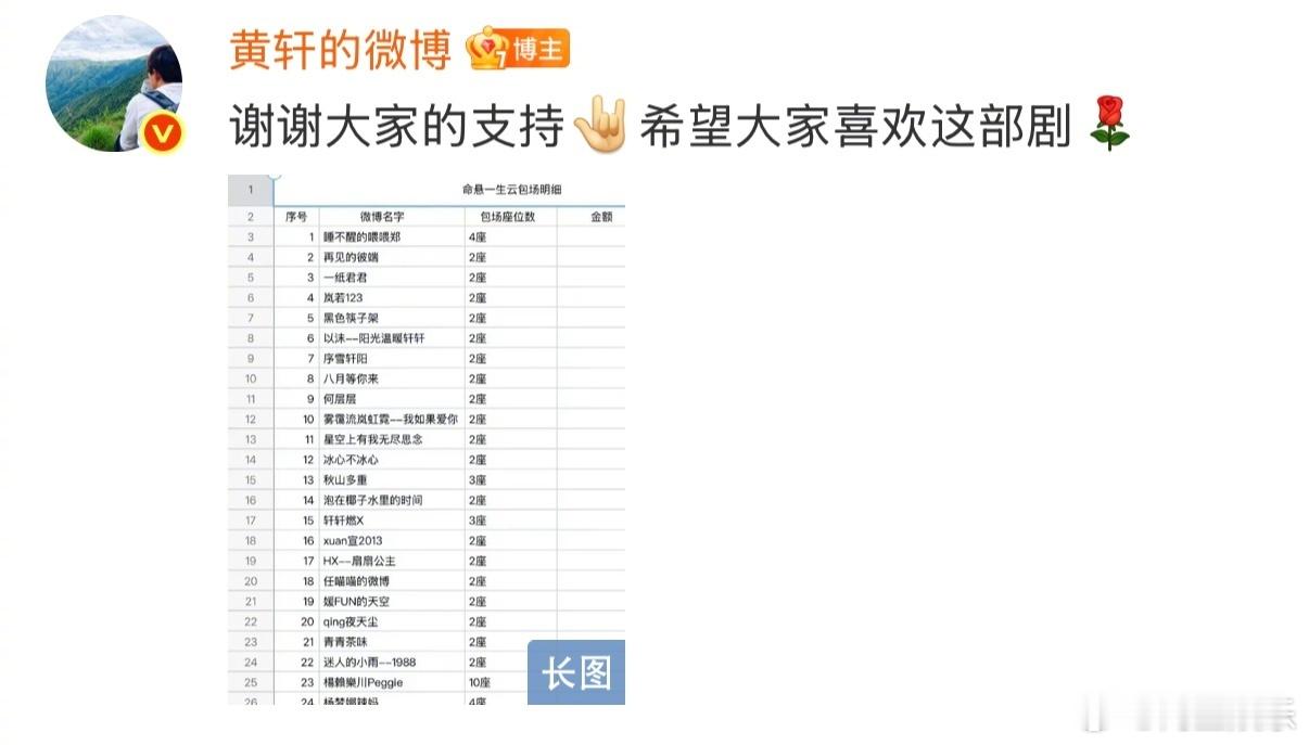 黄轩拉表感谢云包场的粉丝,感谢大家支持命悬一生,这个黄轩还是太真诚了 黄轩太真诚了