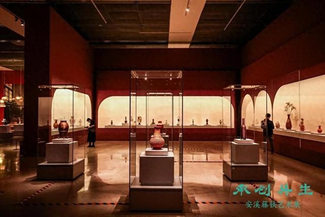 中国工艺美术馆展厅内灯光璀璨,安溪藤铁艺术作品在灯光的照射下熠熠生辉。(安溪县委宣传部供图)
