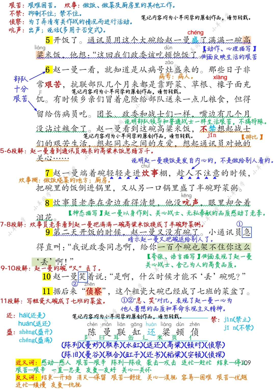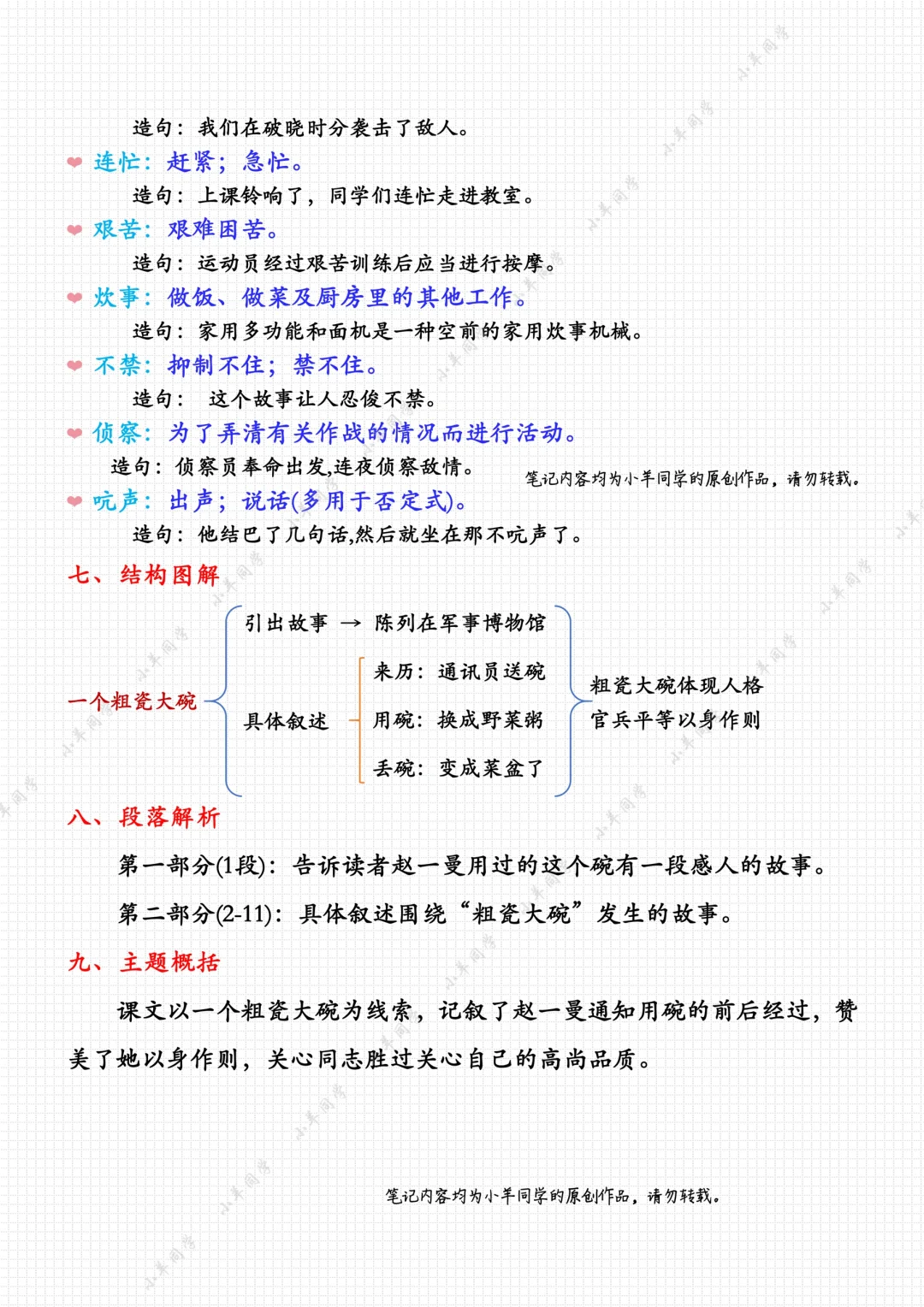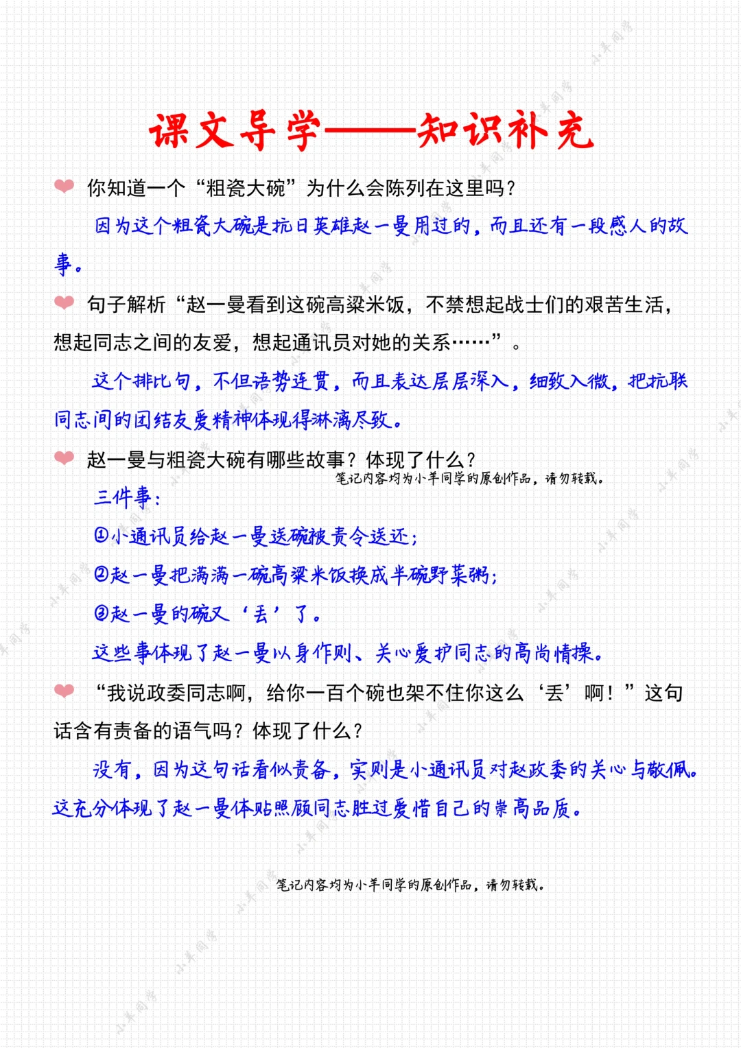 课文以一个粗瓷大碗为线索,记叙了赵一曼通知用碗的前后经过,赞美了她以身作则,关心同志胜过关心自己的高尚品质。