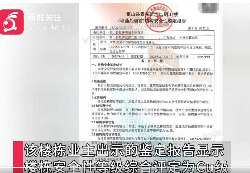 “简直拿大伙的命当儿戏!”安徽一楼业主,为了自己舒坦,愣是在楼下偷偷挖个近300平的地下室,物业讲自己管不了,业主继续挖,不料造成整栋楼32户的房子不同程度开裂,差点成了 “豆腐渣”,业主自掏腰包给整栋楼房主10天每天150块钱安置费,可32户房主后续怎么办? 10月13日,据百姓关注报道,六安某小区,挖地下室的是业主黄某某。打今年 8 月份起,这人就跟做贼似的,白天用挖机在底下 “咚咚” 凿,下半夜趁着小区没人,偷偷把土装上车运走。 为了掩人耳目,他还特意搭了个 3 米多高的围栏,施工时把门一锁,外人瞅着还以为是搞正常装修,谁能想到里头在 “挖地道”? 就这么瞒天过海干了快俩月,直到楼上住户发现家里墙面不对劲,这事才彻底兜不住。 最惨的是顶楼 9 楼的包女士,家里没有一面墙是好的,横缝、竖缝跟蜘蛛网似的,还有那要命的八字形裂缝,窗台的大理石直接断成两截,一到下雨天,雨水顺着裂缝往屋里灌,好好的家变成了 “水帘洞”,晚上睡觉都不敢踏实。 不光是她,整栋楼 32 户人家没一个幸免,这栋楼的总价值加起来超两千万,现在因为这事,房子直接掉价,想卖都没人敢要。 后来专业机构上门检测,出的报告更让人揪心。 这栋楼的地基承台下,已经变成了孤立的破损岩石柱,稳定性根本不达标,地基评了 Cu 级,整栋楼更是评到了 Csu 级。 可能有人听不懂这等级啥意思,咱说白了就是:这房子已经成了局部危房,住进去跟踩在薄冰上似的,指不定啥时候就出事。 建筑圈的人都知道,Cu 级就意味着房子的 “骨架” 出了大问题,必须马上修,晚一步都可能出危险。 事闹大后,各方的反应真是 “各有各的说法”。业主们去找物业,物业人谈到,没执法权,管不了,早就上报了,可没收到鉴定结果,只能干着急。 有网友说:“没执法权不假,但 3 米高的围栏、半夜运土的卡车,物业真看不见?就算管不了,提前跟业主提个醒总该行吧?” 还有人直接质疑:“是不是收了,故意装聋作哑?” 更让业主寒心的是,让黄某某给了 10 天安置费,每天 150 块,这钱花完就没下文了。现在大伙愁的是,后续住哪、房子咋修、损失谁来赔,全是没谱的事。 六安深度达到 3.7 米,基础梁都裂了,钢筋都露出来了,出现八字形裂缝。 问题1:包女士等 32 户业主房屋开裂、价值缩水,能向黄某某要哪些赔偿? 《民法典》第二百九十六条:不动产权利人因用水、排水、通行等利用相邻不动产的,应当尽量避免对相邻的不动产权利人造成损害。 黄某某私挖 3.7 米深地下室,直接导致包女士家成 “水帘洞”、整栋楼变局部危房,除了已给的 10 天安置费,32 户业主还能要求他承担房屋加固维修费、长期安置费,以及房屋贬值的损失,这些都是他侵权造成的直接损失。 问题2:如果物业说 “没执法权管不了”,这种说法合法吗? 《物业管理条例》第五十条:业主、物业服务企业不得擅自占用、挖掘物业管理区域内的道路、场地,损害业主共同利益。 黄某某搭 3 米围栏、半夜运土,物业不可能没察觉,即便无执法权,也有制止、及时公示和持续跟进的义务,仅上报后就 “干着急”,已涉嫌未履行管理职责,业主可追究物业的连带责任。 问题3:黄某某私挖地下室致房屋成危房,可能负刑事责任吗? 《刑法》第一百三十四条之一:在生产、作业中违反有关安全管理的规定,具有发生重大伤亡事故或者其他严重后果的现实危险的,处一年以下有期徒刑、拘役或者管制。 黄某某挖 300 平、深 3.7 米,且房屋已达 Cu 级,其行为已具备现实危险,极可能构成此罪被追责。 网友们都在问:“当初上海挖地下室的都判刑了,六安这起咋还没动静?总不能只给 10 天安置费就完事吧?这不是‘雷声大,雨点小’嘛!” “房子是老百姓的根”,有人为了自己的私欲把别人的根挖松了,这事必须给个明明白白的说法! 信息来源: 百姓关注 2025-10-13 安徽六安一业主私挖300平地下室 住户:家中墙体出现八字形裂缝