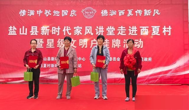 近日,盐山县孟店镇西夏村的新时代文明实践广场上暖意融融,一场以“情满中秋迎国庆德润西夏传新风”为主题的新时代家风讲堂正在这里举办。现场评选出3名“好儿媳”和3户“星级文明户”。