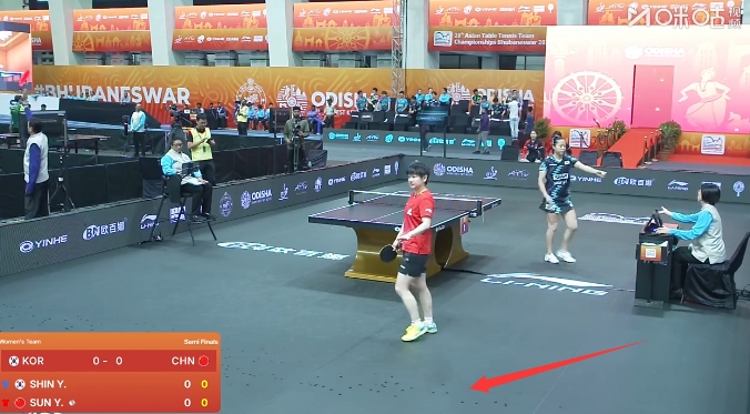 直播吧10月14日讯今天乒乓球印度亚锦赛女团半决赛在中国和韩国之间进行,第一盘比赛孙颖莎出战对阵申裕斌,在比赛过程中,场馆出现了漏水的情况。