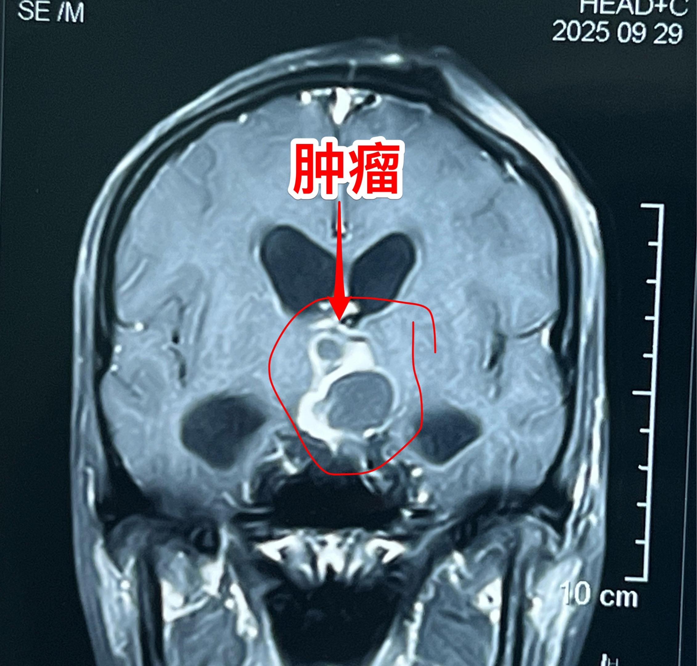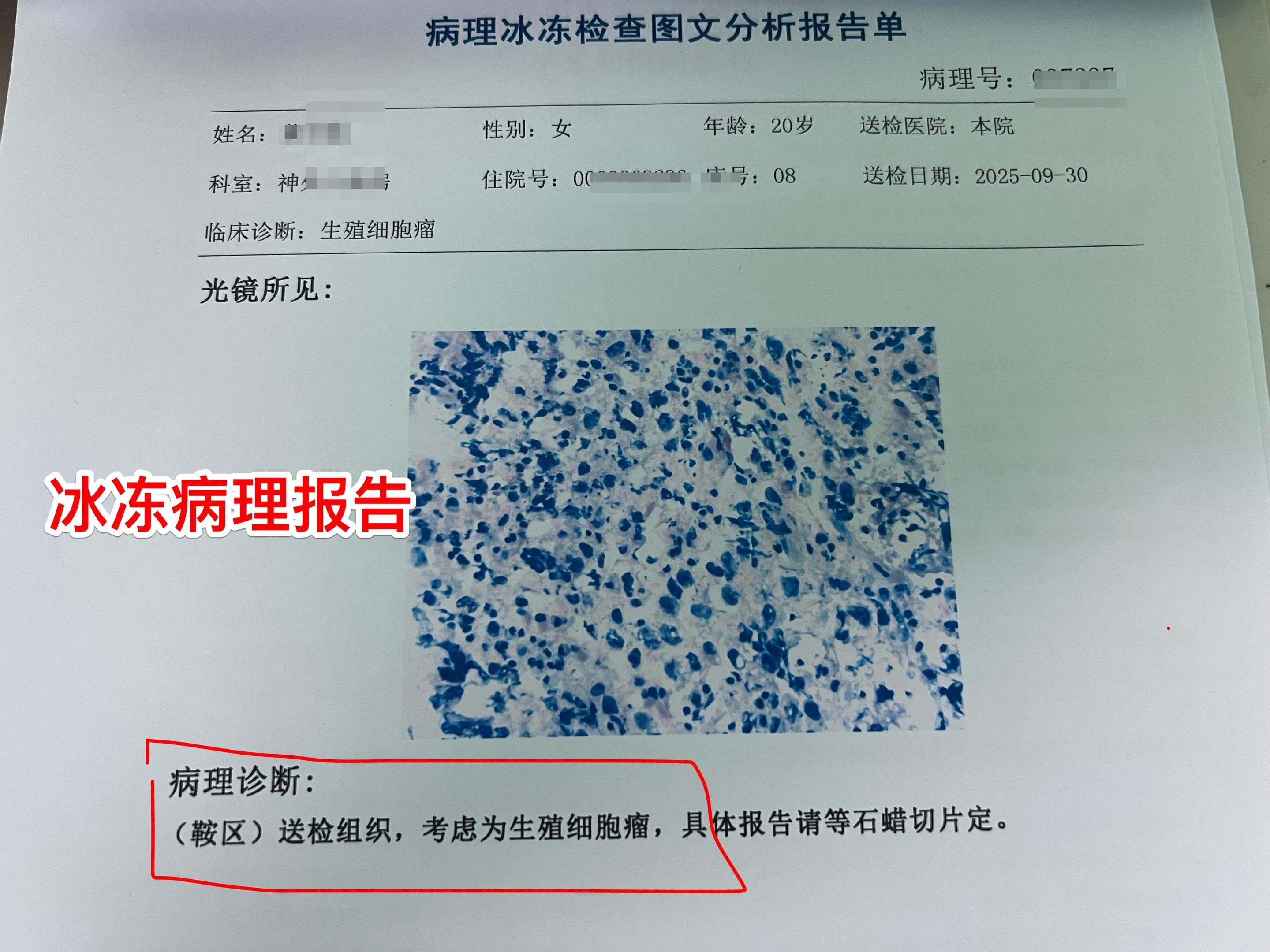 20岁女大学生生病三年身体虚弱如林黛玉。洛阳市女学生,三年前开始出现食欲下降,伴体重减轻。一年前出现多饮多尿症状、内分泌紊乱。怀疑是糖尿病,未得到有效治疗,症状越来越严重。2025.9病人出现头痛、呕吐、嗜睡。在洛阳市某医院就诊,行磁共振检查发现鞍区肿瘤伴有脑积水。于9月23日行脑室引流术,手术后病人头痛、呕吐症状好转。