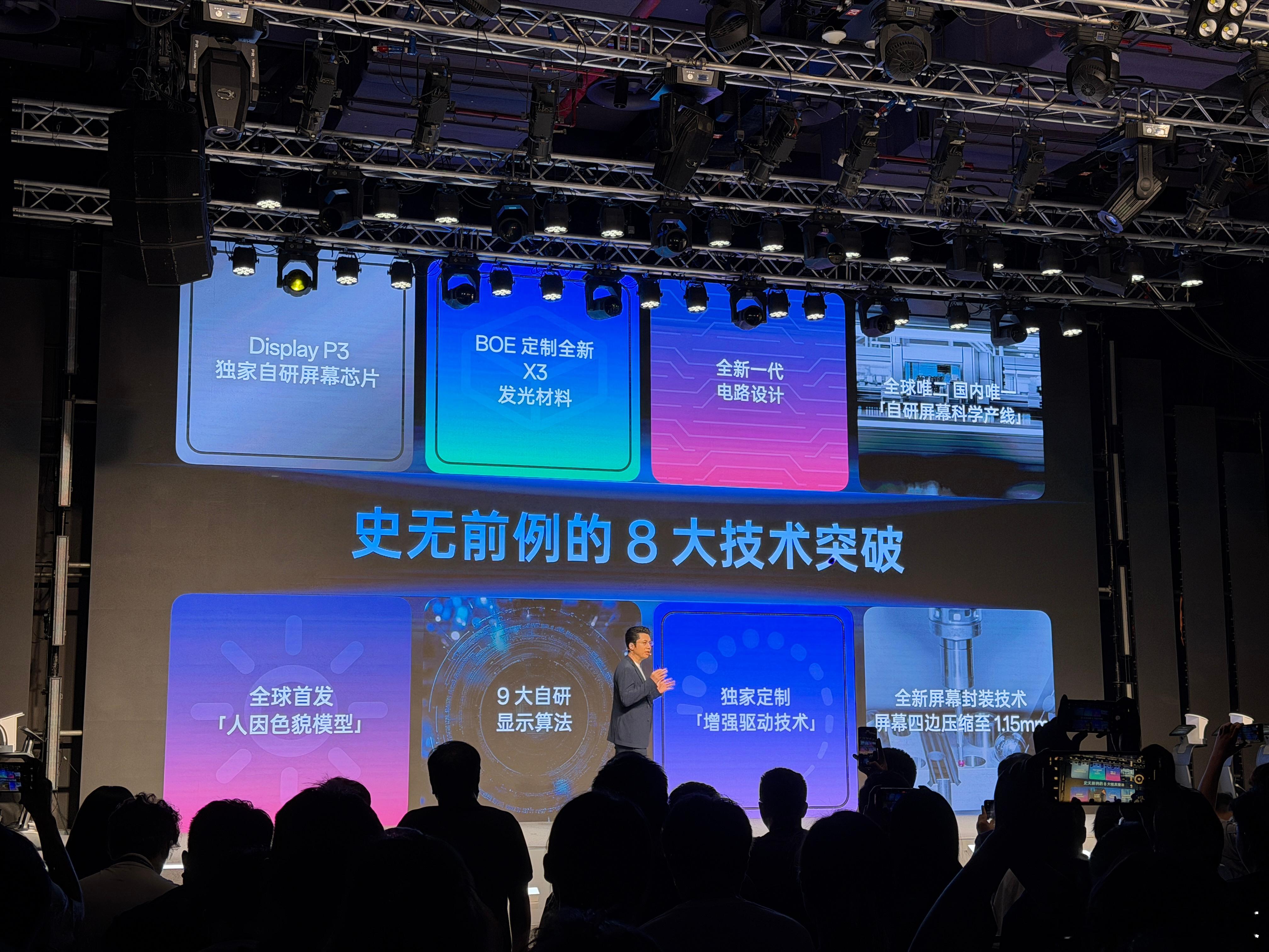 *亮度和色彩均一表现出色、显示效果大幅领先行业标杆:通过自研显示科学产线「精密二次校准」,结合独家定制的「暗光色貌模型」和联合京东方定制的全新 X3 发光材料,睡前看图文就算低亮度也不影响色彩体验;