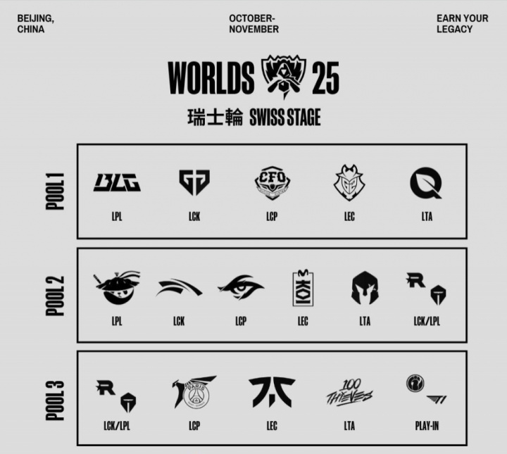 瑞士轮第一轮,第一个池子的队伍将对上第三个池子的队伍,第二个池子的队伍相互对阵。同赛区队伍在第一轮不会内战,若抽签抽到会顺延。