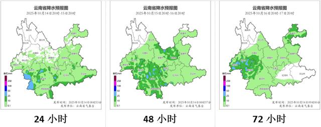 2025年10月14日20:00~10月15日20:00,玉溪市西部,楚雄州西部,普洱市东北部、西北部,怒江州西北部,临沧市东部、西部和南部发生滑坡泥石流的风险较高。