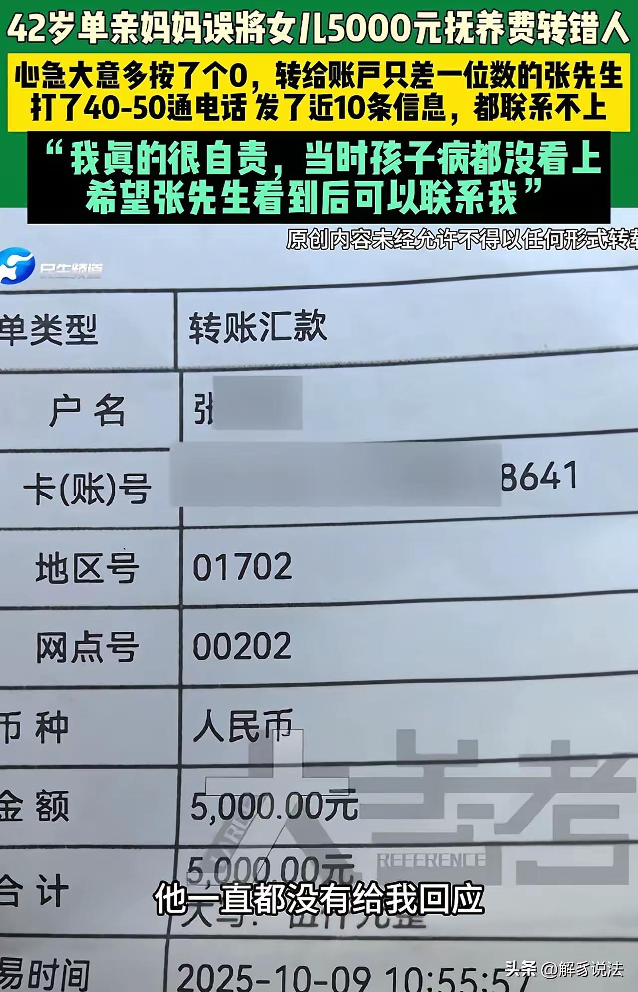 这起事件反映了在网络转账操作中可能出现的疏忽,以及由此引发的法律责任问题。以下是对此案的详细分析与建议: 一、案件背景简要 熊女士是一位单亲妈妈,为了给患牙问题的女儿治病,急于将女儿卡上的5000元抚养费转到自己卡上。不料操作失误,多输入了一个“0”,导致原本应转账到自己账户的款项误入他人账户(张先生账户)。她多次尝试联系对方未果,情况变得非常紧急和令人焦虑。 二、法律分析 根据《民法典》的相关规定,熊女士的损失(5000元)可以向张先生追偿,因其行为涉及不当得利。 不当得利的构成 得利人:张先生(账户持有人) 获利情况:他无合法依据获得了多出的5000元 失去利益一方:熊女士(因为资金未能用于女儿治疗) 因果关系:账户内资金的获得和熊女士由此无法及时治疗女儿直接相关 无合法依据:转账系错误,非合同或其他合法交易 张先生的责任 明知或应当知道自己收到的是错误转账(根据多次联系未果的情况,他理应知道) 持有资金未返还,构成不当得利,依法应返还熊女士的款项 三、法律依据 《民法典》第985条: 受益人无合法依据取得利益,应返还 第987条: 若得利人知道或应当知道利益没有法律依据,须返还并赔偿因占用资金造成的损失 四、具体法律建议 证据收集 转账记录、短信、电话联系记录 女儿的病历和治疗急迫性说明 司法途径 若对方拒绝返还,应依法提起民事诉讼,要求返还5000元及相关损失 在诉讼中,可请求法院判令返还本金,以及因延误治疗造成的损失赔偿 其他建议 通过媒体曝光具有一定的社会影响力,促使对方主动归还 在日后进行转账操作时,应更加谨慎,避免类似错误 五、总结 本案中,张先生因错误获得了熊女士的资金,依据法律,属于不当得利范畴。熊女士有权依法追偿该款项,并可请求赔偿损失。建议采取合法途径维护权益,同时呼吁所有人操作财务时务必仔细核对,防止发生类似事件。 希望以上分析能帮助熊女士依法有效维权,也希望她早日解决女儿的治疗问题,度过难关。银行转账转错了 恋爱转账纠纷