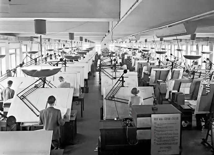 在没有CAD软件的时代,是需要工程师们这样绘图的。不知道现在的理工科大学,还教不