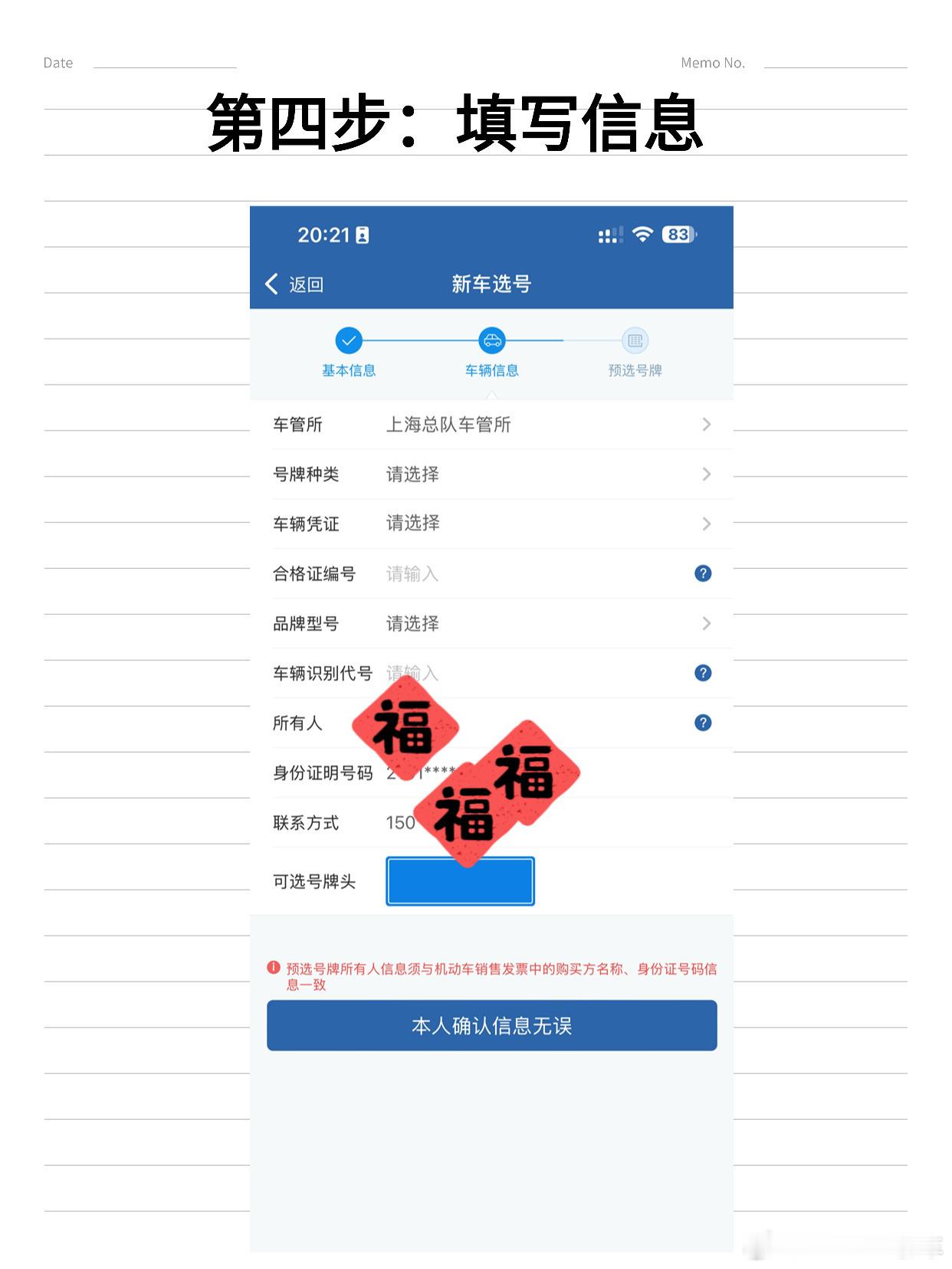 (3)按提示填写车辆信息、所有人信息,确认预查验结果。