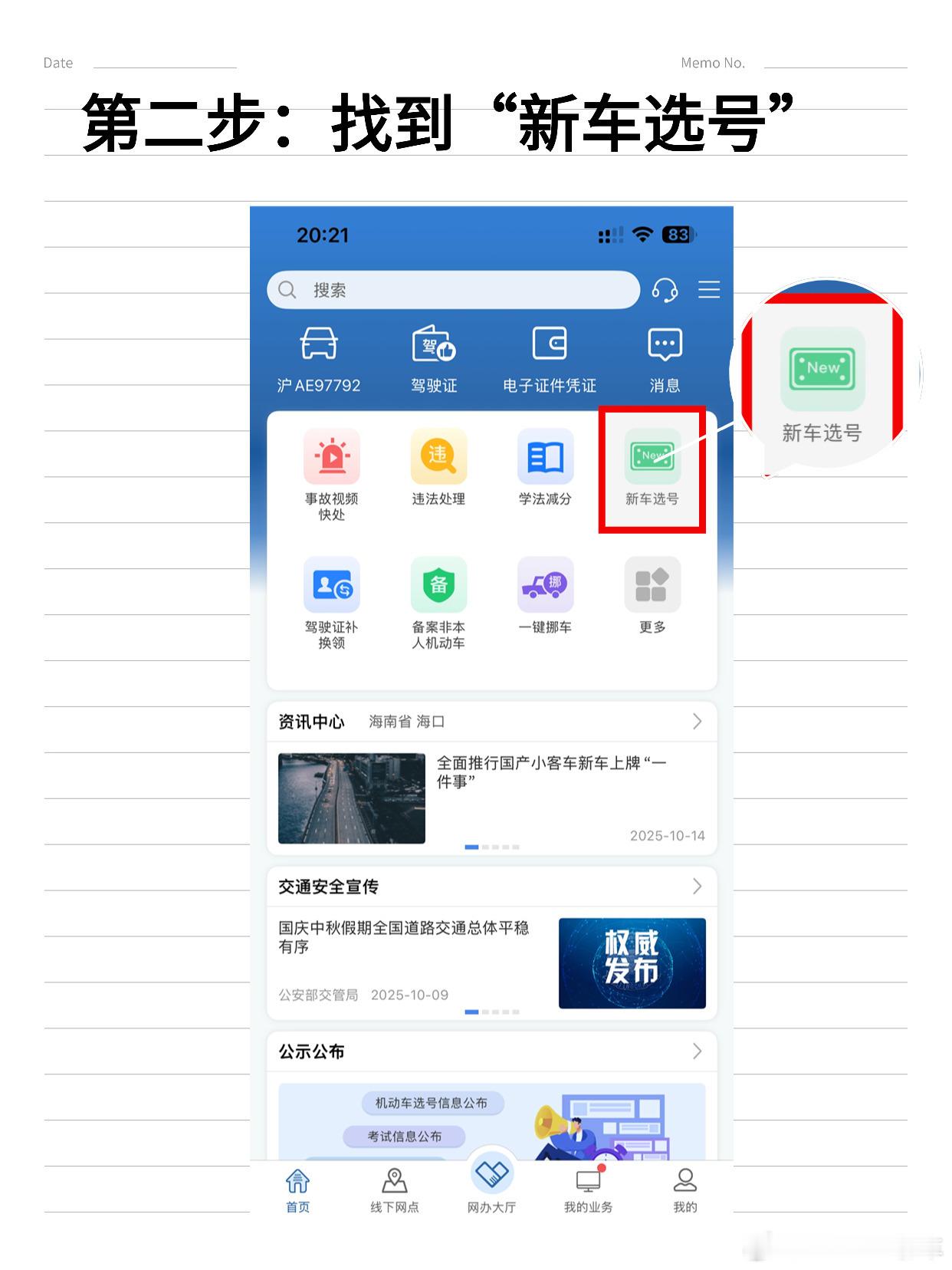 (2)在首页找到“新车上牌”或“国产小客车新车上牌”入口。