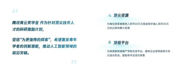 腾讯招聘全球负责人罗海波表示,作为面向顶尖技术人才的科研激励计划,青云奖学金坚信“为更值得的探索”,支持敢于探索未知、富有创新精神的学子,进行创造性的研究,并转化为推动进步的真实力量,推动人工智能领域的前沿突破。